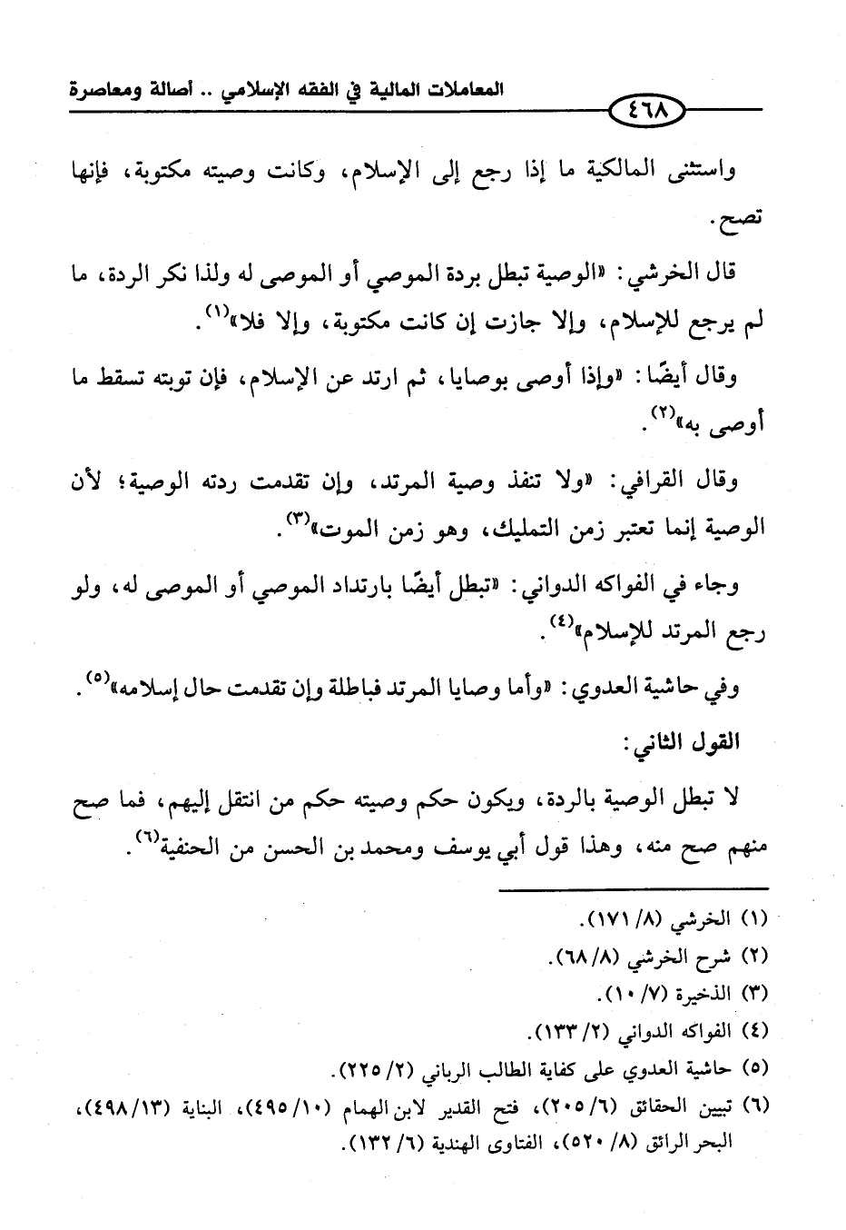 (¬٦) تبيين الحقائق (٦/ ٢٠٥)، فتح القدير لابن الهمام (١٠/ ٤٩٥)، البناية (١٣/ ٤٩٨)، البحر الرائق (٨/ ٥٢٠)، الفتاوى الهندية (٦/ ١٣٢).