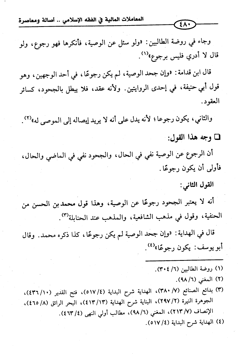 أنه لا يعتبر الجحود رجوعًا عن الوصية، وهذا قول محمد بن الحسن من الحنفية، وقول في مذهب الشافعية، والمذهب عند الحنابلة (¬٣).