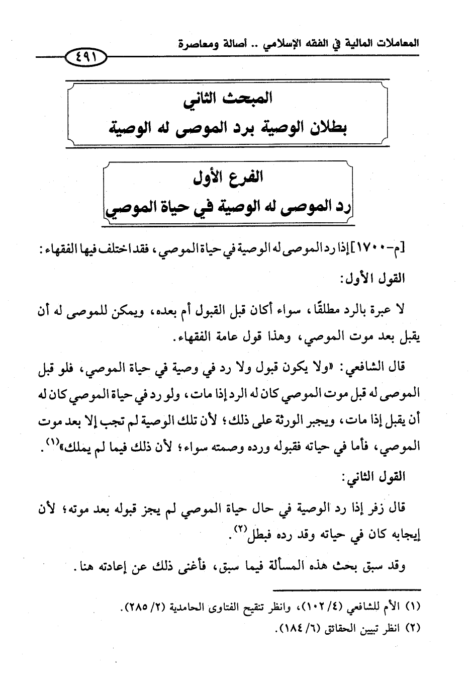 المبحث الثاني بطلان الوصية برد الموصى له الوصية