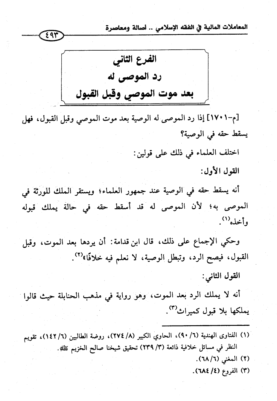 الفرع الثاني رد الموصى له بعد موت الموصي وقبل القبول