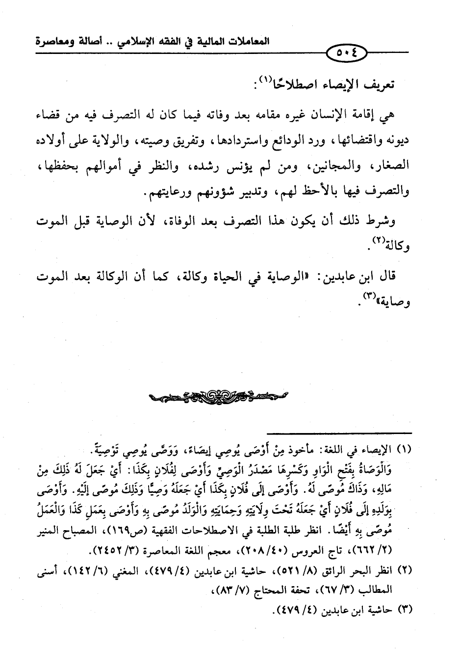 (¬١) الإيصاء في اللغة: مأخوذ مِنْ أوْصَى يُوصِي إيصَاءً، وَوَصَّى يُوصِي تَوْصِيةً. وَالْوَصَاةُ بِفَتحِ الْوَاوِ وَكَسْرِهَا مَصْدَرُ الْوَصِيَّ وَأوْصَى لِفُلَانٍ بِكَذَا: أَيْ جَعَلَ لَهُ ذلِكَ مِنْ مَالِهِ، وَذَاكَ مُوصّى لَهُ. وَأوْصَى إلَى فُلَانٍ بِكَذَا أَيْ جَعَلَهُ وَصِيًّا وَذلِكَ مُوصَى إلَيْهِ. وَأَوْصَى بِوَلَدِهِ إلَى فُلَانٍ أيْ جَعَلَهُ تَحْتَ وِلَايَتهِ وَحِمَايَتِهِ وَالْوَلَدُ مُوصًى بِهِ وَأَوْصَى بِعَمَلِ كَذَا وَالْعَمَلُ مُوصًى بِهِ أيْضًا. انظر طلبة الطلبة في الاصطلاحات الفقهية (ص ١٦٩)، المصباح المنير (٢/ ٦٦٢)، تاج العروس (٤٠/ ٢٠٨)، معجم اللغة المعاصرة (٣/ ٢٤٥٢).