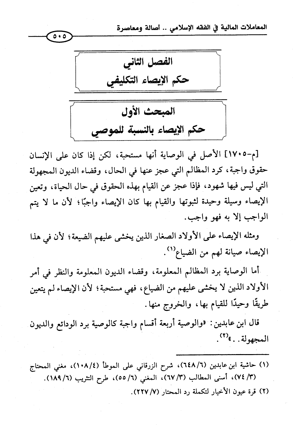 الفصل الثاني حكم الإيصاء التكليفي