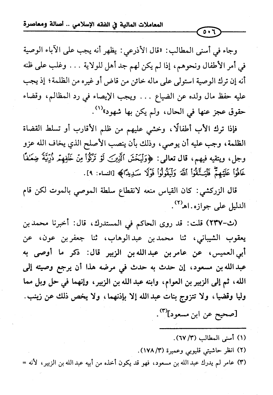 (ث -٢٣٧) قلت: قد روى الحاكم في المستدرك، قال: أخبرنا محمَّد بن يعقوب الشيباني، ثنا محمد بن عبد الوهاب، ثنا جعفر بن عون، عن أبي العميس، عن عامر بن عبد الله بن الزبير قال: ذكر ما أوصى به عبد الله بن مسعود، إن حدث به حدث في مرضه هذا أن يرجع وصيته إلى الله، ثم إلى الزبير بن العوام، وابنه عبد الله بن الزبير، وإنهما في حل وبل مما وليا وقضيا، ولا تتزوج بنات عبد الله إلا بإذنهما، ولا يخص ذلك عن زينب. [صحيح عن ابن مسعود] (¬٣).