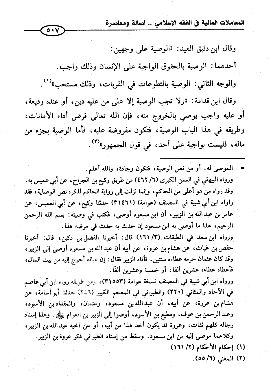 وقال ابن دقيق العيد: "الوصية على وجهين: