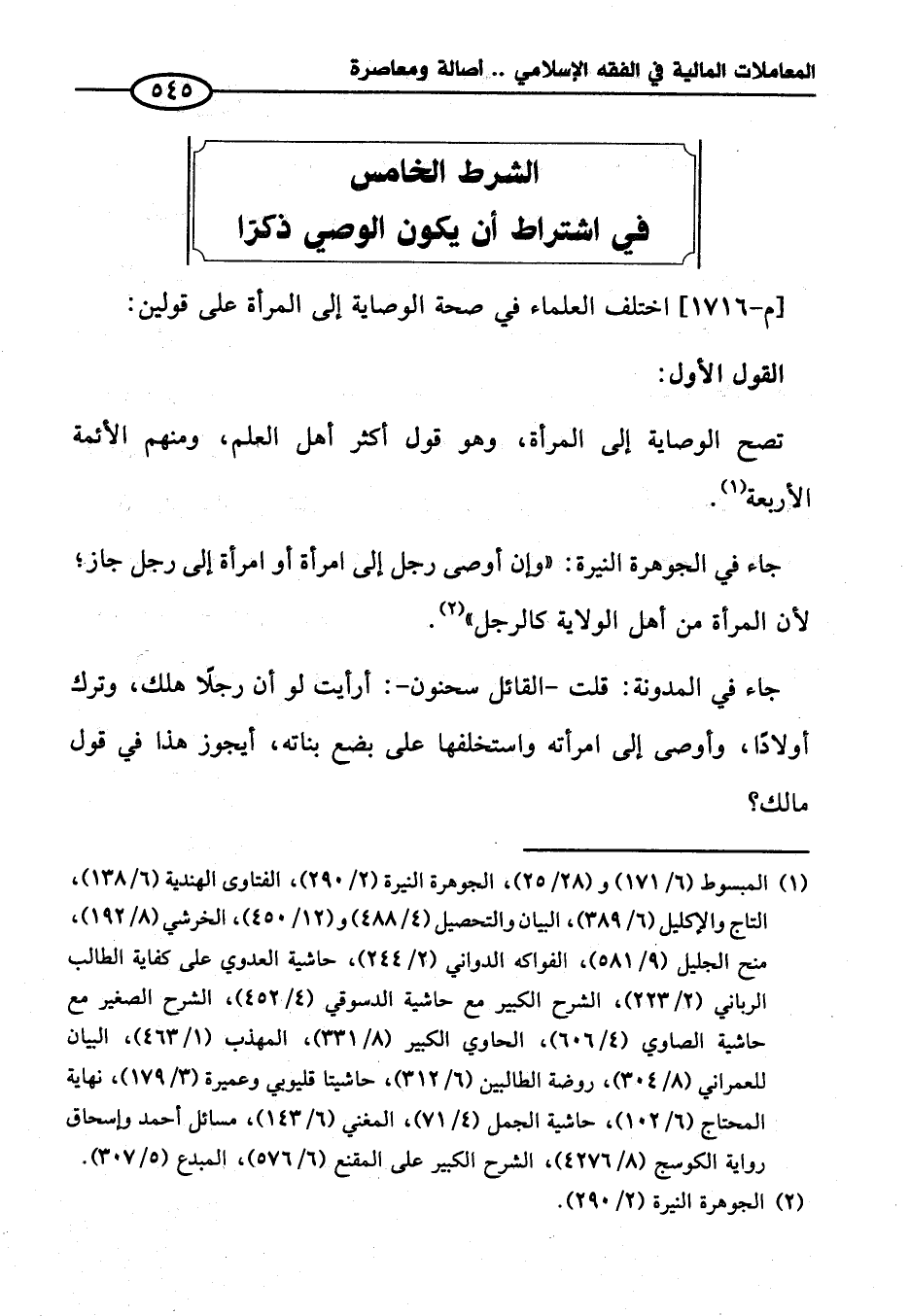 الشرط الخامس في اشتراط أن يكون الوصي ذكرًا