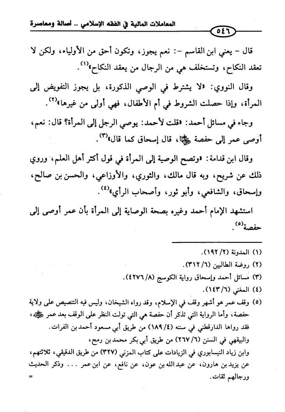 (¬٥) وقف عمر هو أشهر وقف في الإسلام، وقد رواه الشيخان، وليس فيه التنصيص على ولاية حفصة، وأما الرواية التي تذكر أن حفصة هي التي تولت النظر على الوقف بعد عمر - رضي الله عنه -، فقد رواها الدارقطني في سننه (٤/ ١٨٩) من طريق أبي مسعود أحمد بن الفرات.