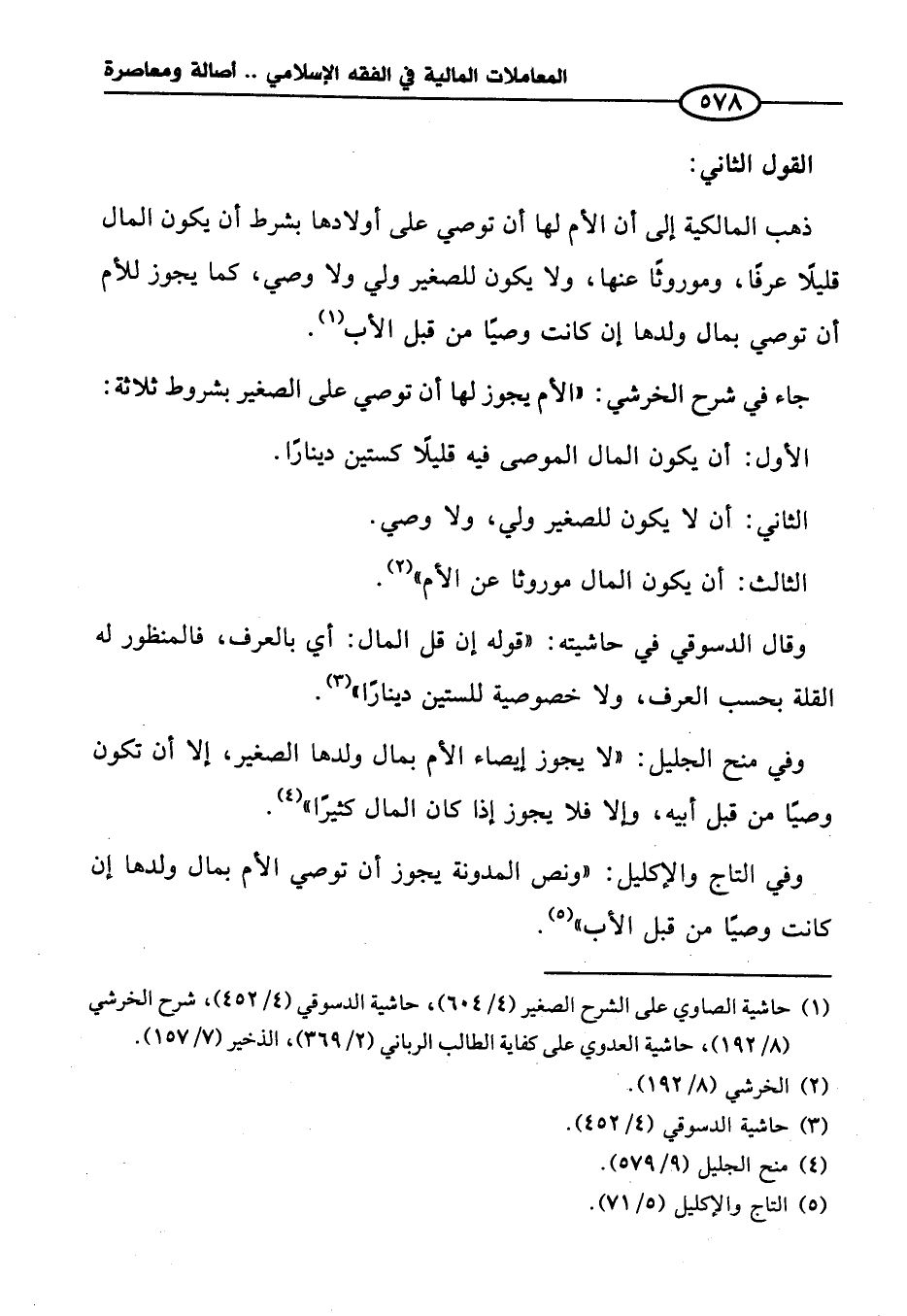 (¬١) حاشية الصاوي على الشرح الصغير (٤/ ٦٠٤)، حاشية الدسوقي (٤/ ٤٥٢)، شرح الخرشي (٨/ ١٩٢)، حاشية العدوي على كفاية الطالب الرباني (٢/ ٣٦٩)، الذخير (٧/ ١٥٧).