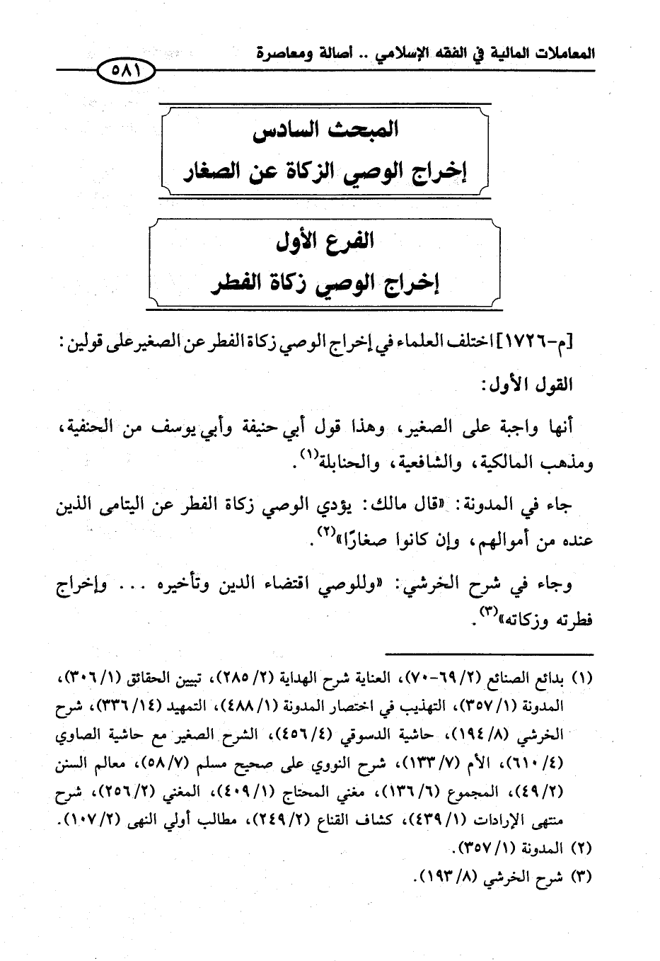 المبحث السادس إخراج الوصي الزكاة عن الصغار