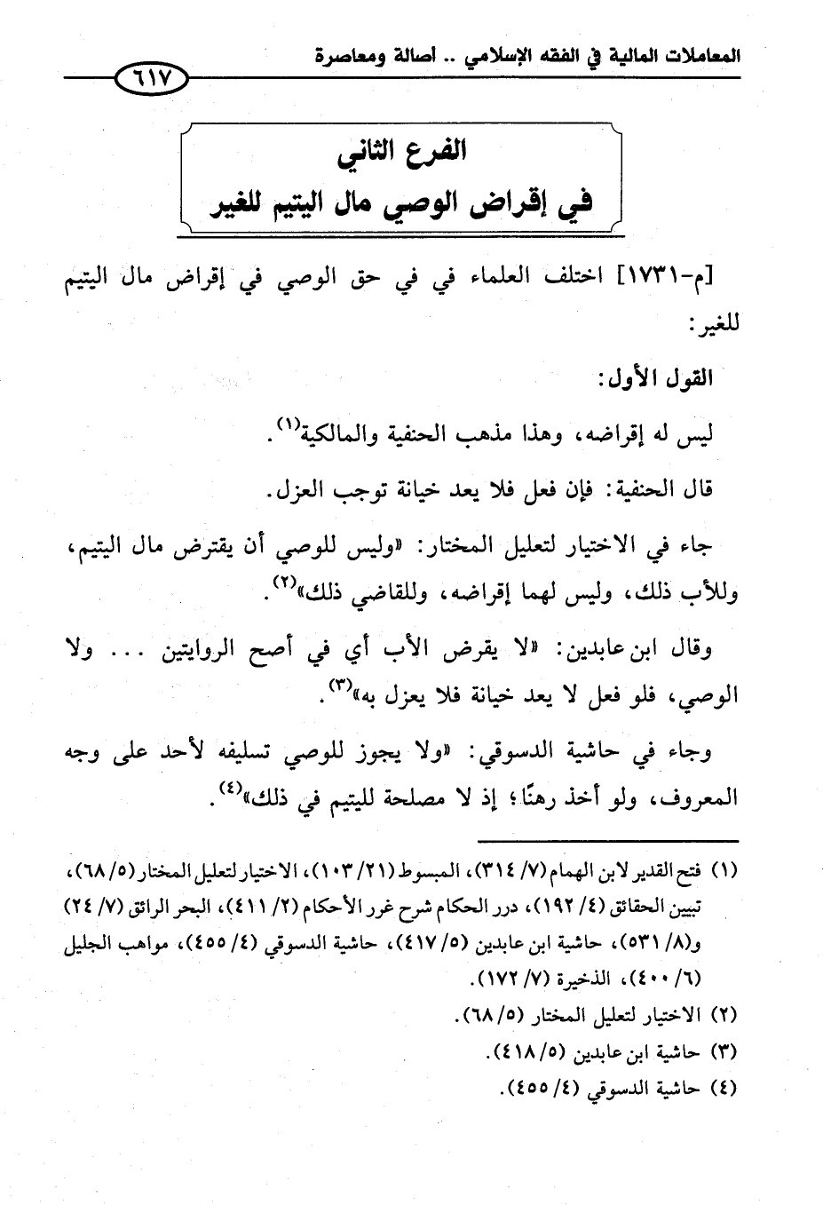 الفرع الثاني في إقراض الوصي مال اليتيم للغير