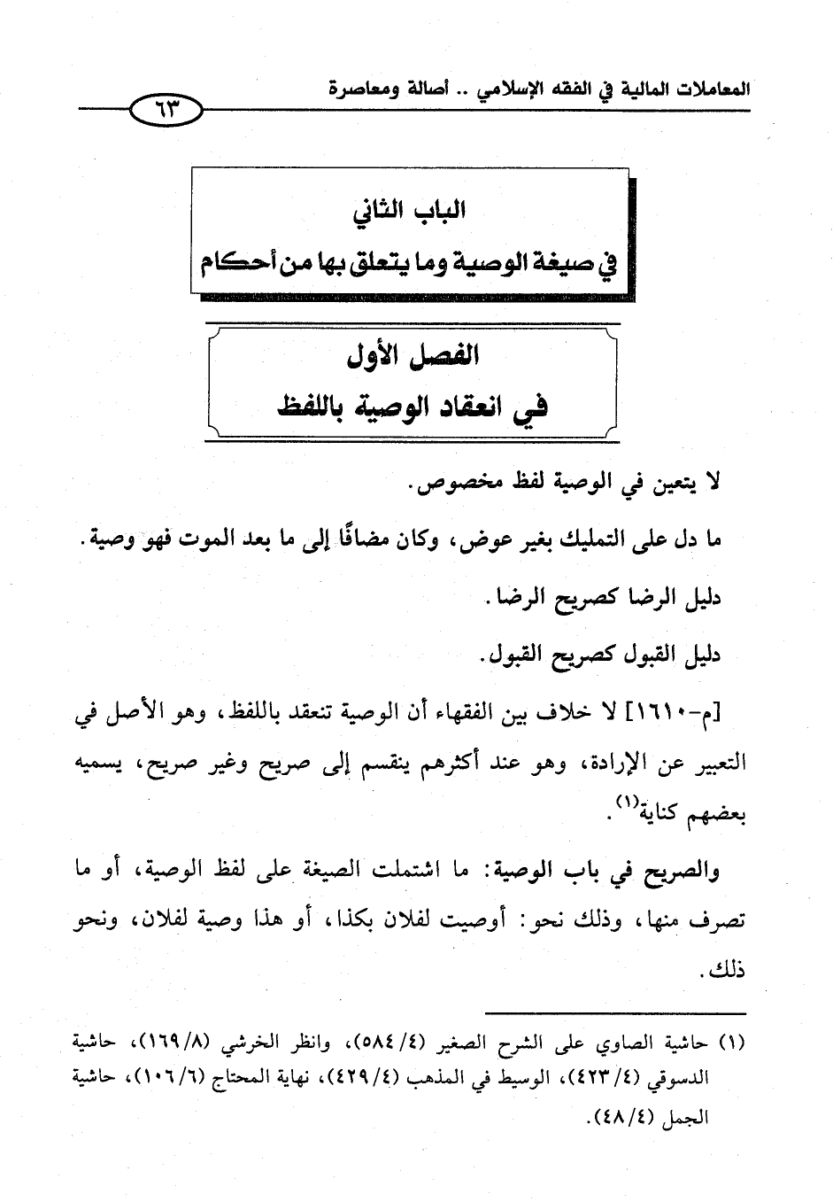 الباب الثاني في صيغة الوصية وما يتعلق بها من أحكام
