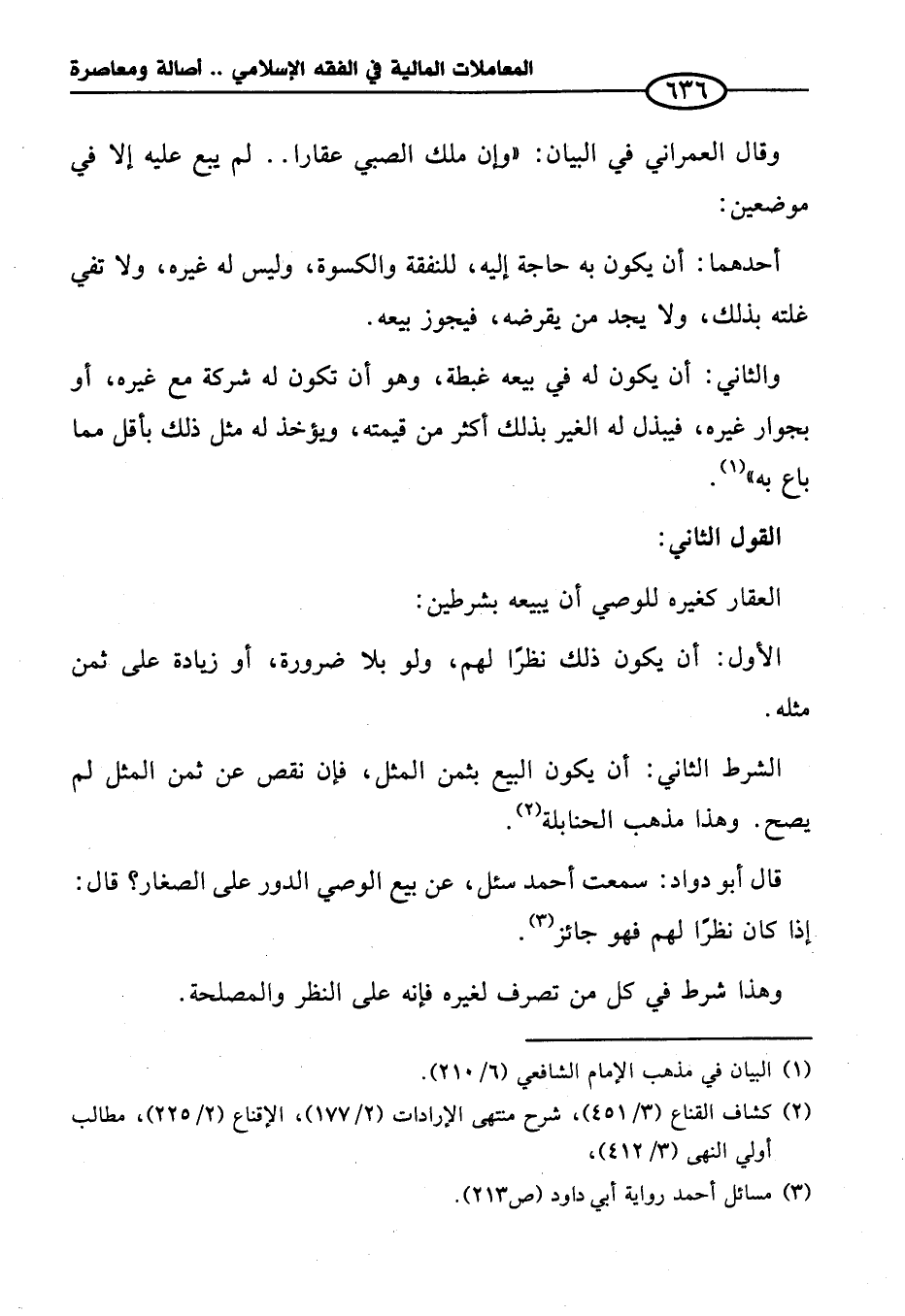 وقال العمراني في البيان: "وإن ملك الصبي عقارا .. لم يبع عليه إلا في موضعين: