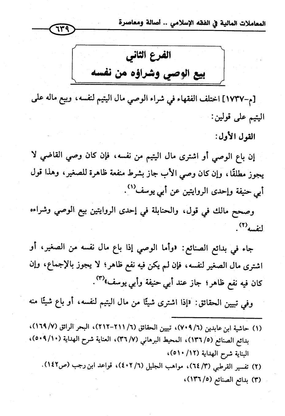 الفرع الثاني بيع الوصي وشراؤه من نفسه