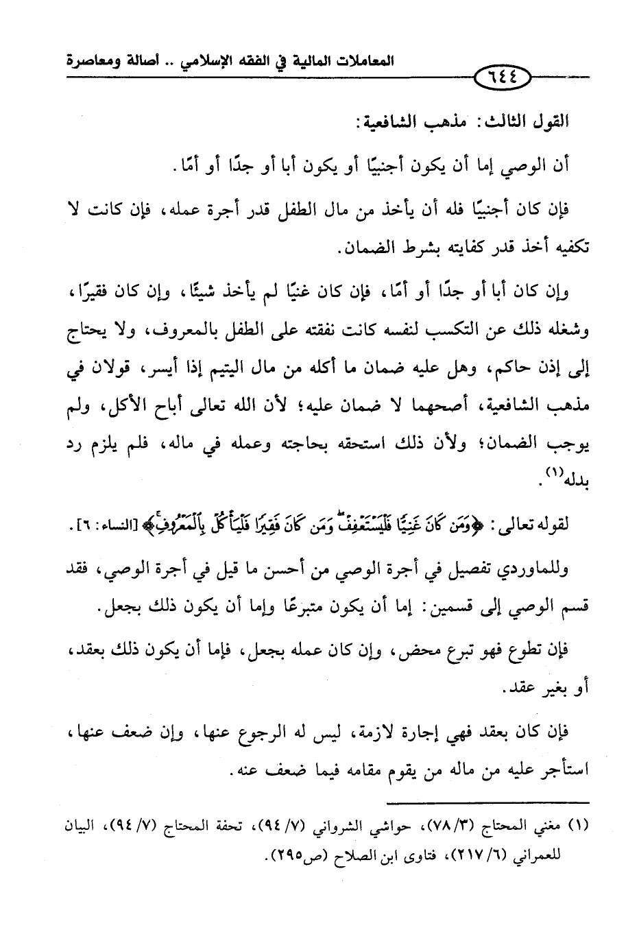 (¬١) مغني المحتاج (٣/ ٧٨)، حواشي الشرواني (٧/ ٩٤)، تحفة المحتاج (٧/ ٩٤)، البيان للعمراني (٦/ ٢١٧)، فتاوى ابن الصلاح (ص ٢٩٥).