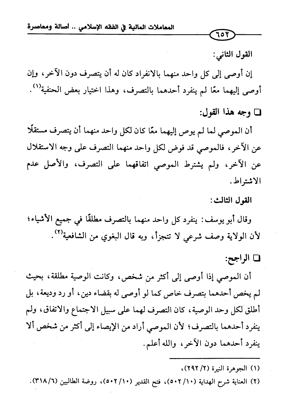 (¬٢) العناية شرح الهداية (١٠/ ٥٠٢)، فتح القدير (١٠/ ٥٠٢)، روضة الطالبين (٦/ ٣١٨).