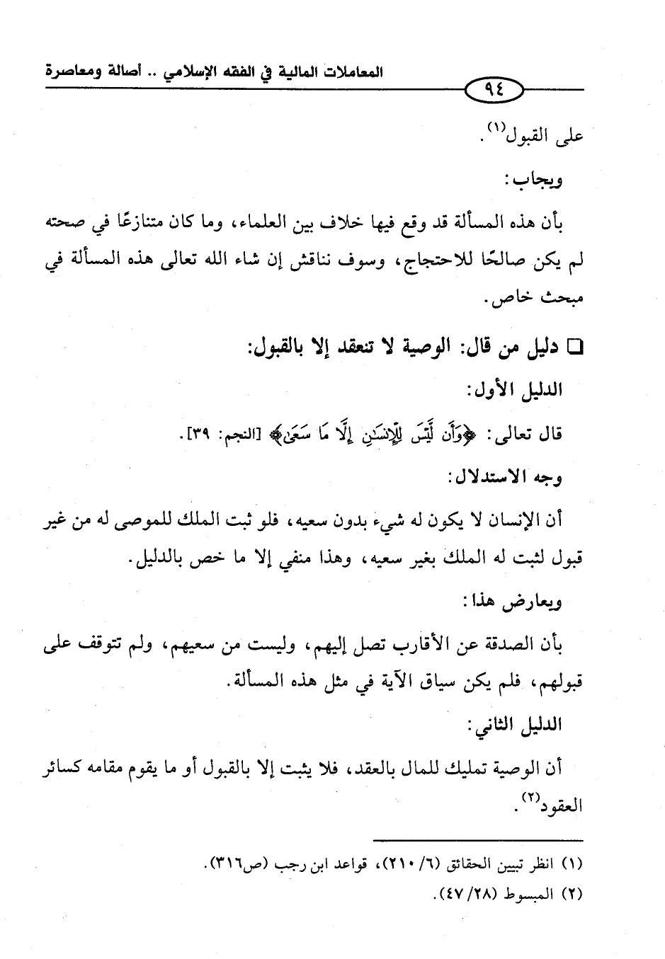 دليل من قال: الوصية لا تنعقد إلا بالقبول: