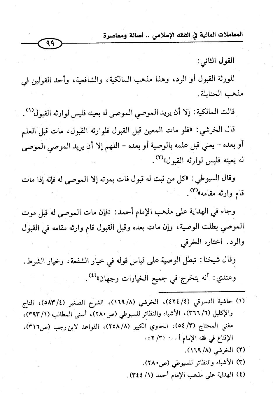 وقال السيوطي: "كل من ثبت له قبول فات بموته إلا الموصى له فإنه إذا مات قام وارثه مقامه" (¬٣).