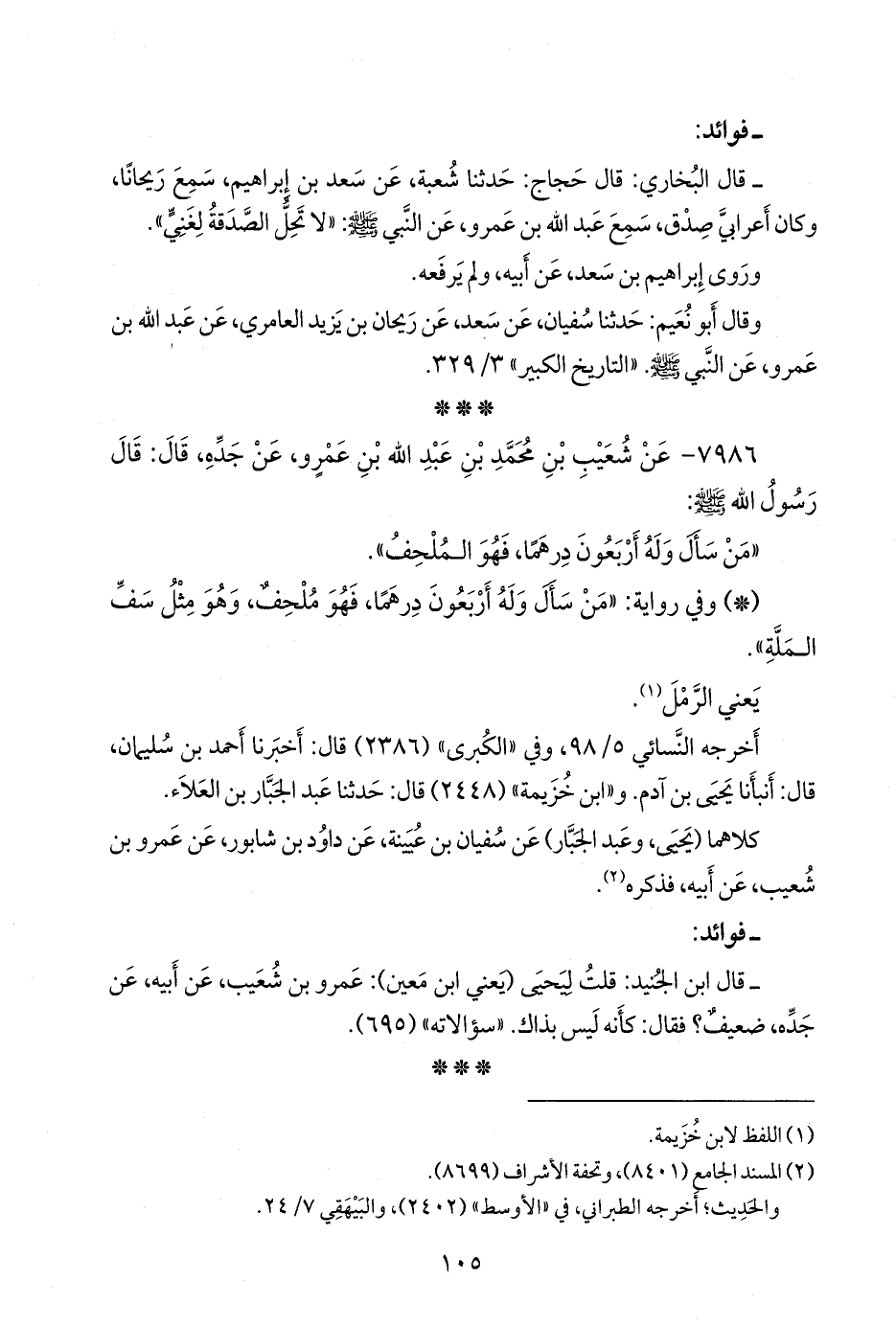 وقال أَبو نُعيم: حدثنا سفيان، عن سعد، عن ريحان بن يزيد العامري، عن عبد الله بن عَمرو، عن النبي صَلى الله عَليه وسَلم. «التاريخ الكبير» ٣/ ٣٢٩.
