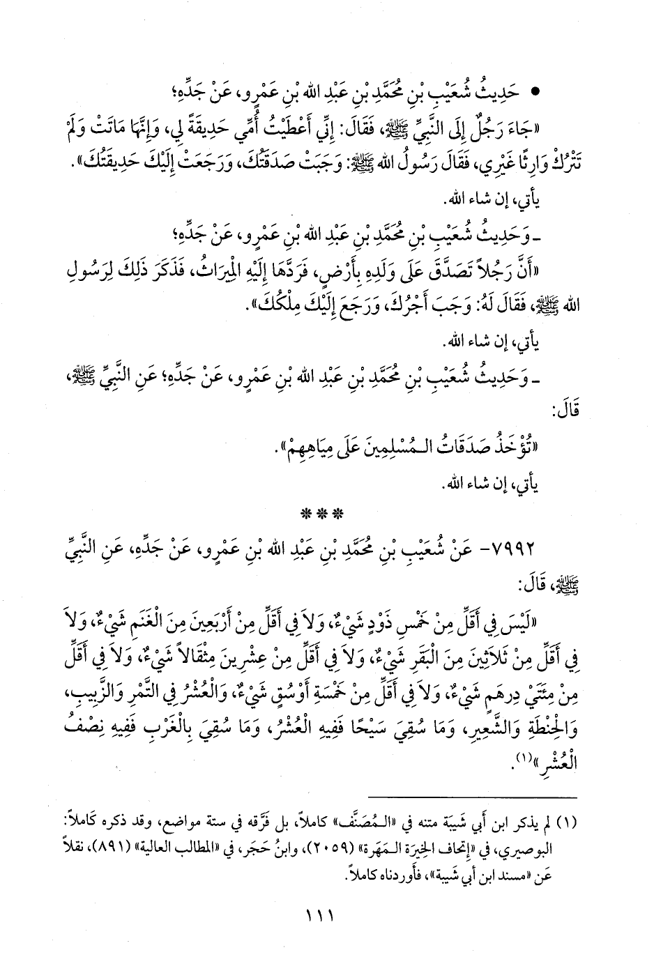 - (٩٩٥٣): «ليس في أقلَّ من مئتي درهم شيء».