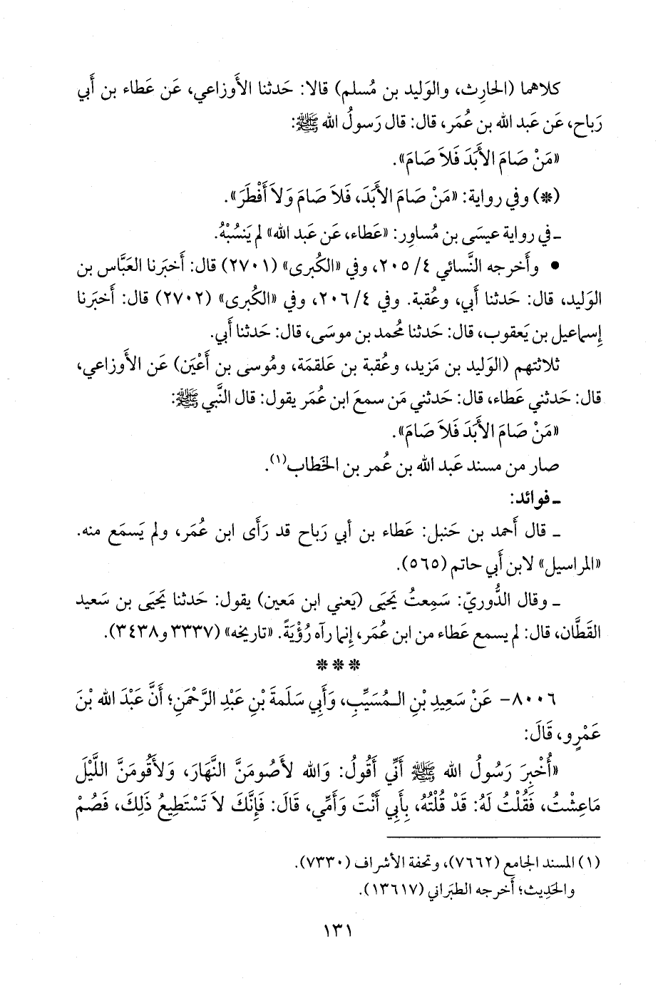 ٨٠٠٦ - عن سعيد بن المُسَيب، وأبي سلمة بن عبد الرَّحمَن؛ أن عبد الله بن عَمرو, قال: