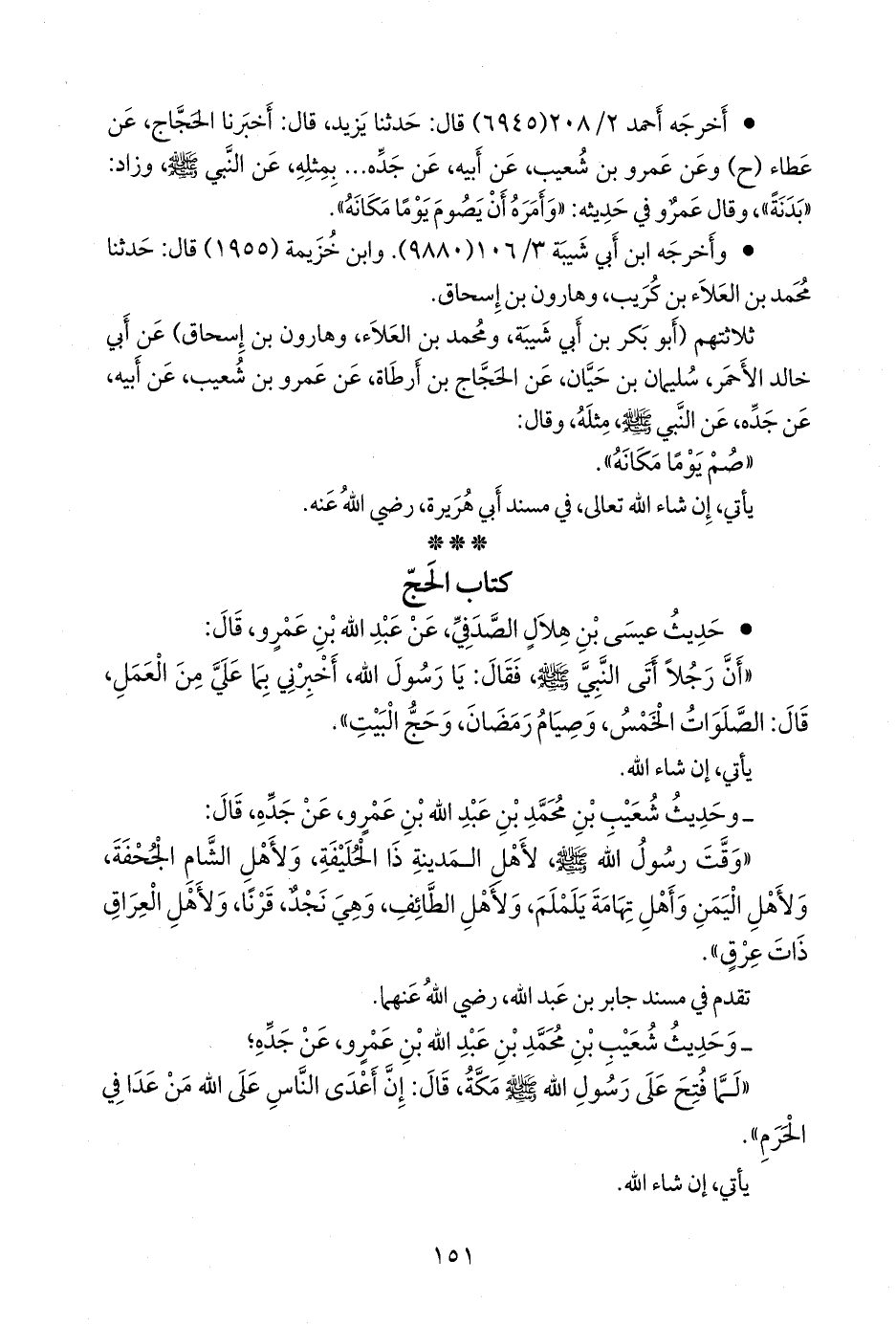 - في رواية يزيد بن هارون: قال: أخبرنا الحجاج، عن عطاء (ح) وعن عَمرو بن شعيب، عن أبيه، عن جَدِّه، بمثله، عن النبي صَلى الله عَليه وسَلم وزاد: «بدنة».