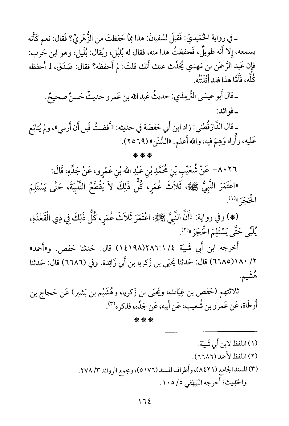 ثلاثتهم (حفص بن غياث، ويحيى بن زكريا، وهُشيم بن بشير) عن حجاج بن أَرطَاة، عن عَمرو بن شعيب، عن أبيه، عن جَدِّه، فذكره (¬٣).