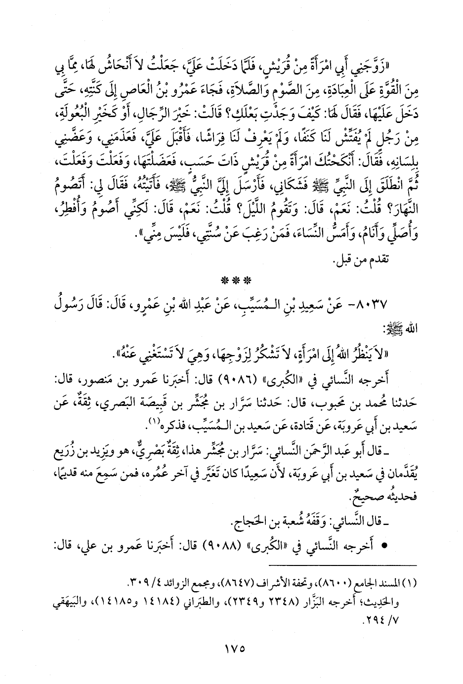 ٨٠٣٧ - عن سعيد بن المُسَيب، عن عبد الله بن عَمرو، قال: قال رسول الله صَلى الله عَليه وسَلم: