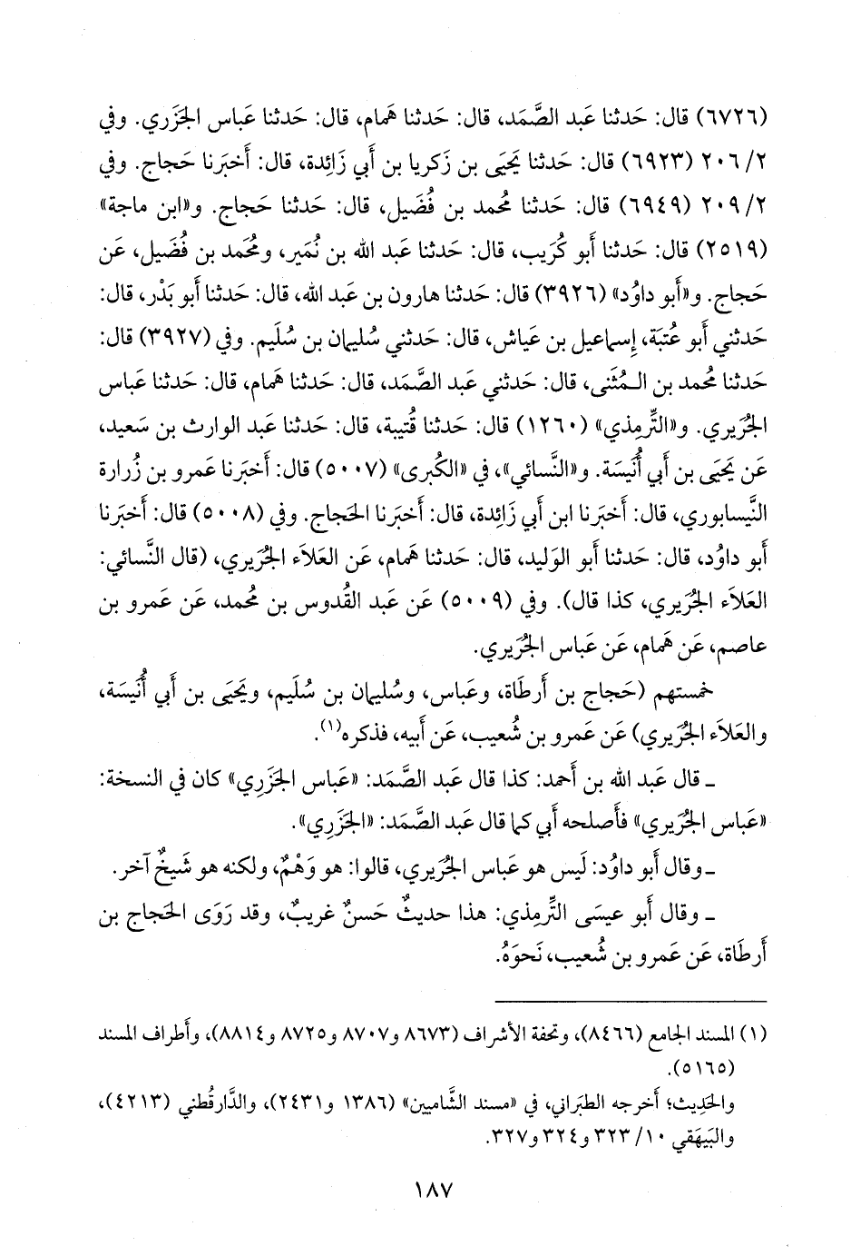 - قال عبد الله بن أحمد: كذا قال عبد الصمد: «عباس الجزري» كان في النسخة: «عباس الجُريري» فأصلحه أبي كما قال عبد الصمد: «الجزري».