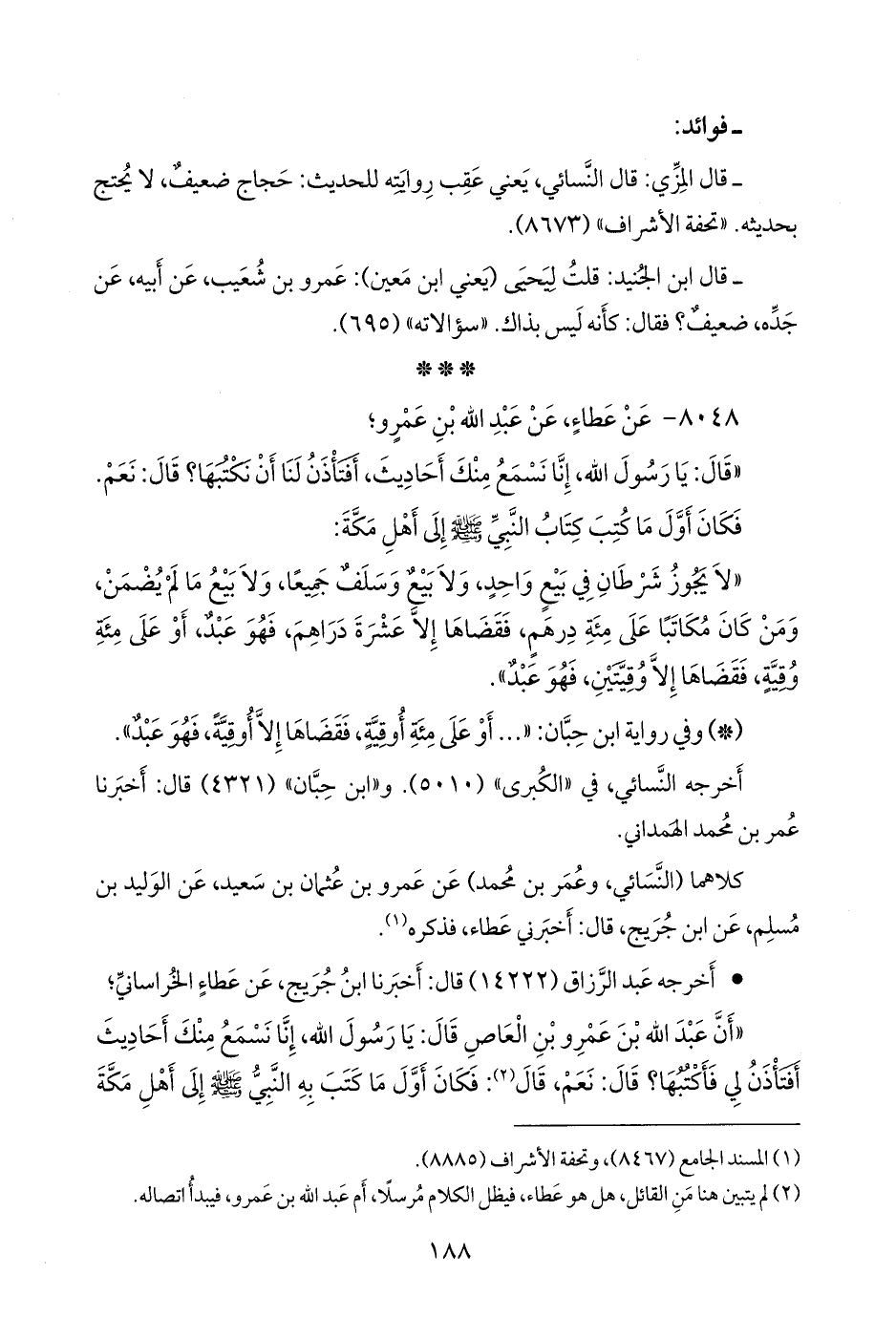 (¬١) لم يتبين هنا من القائل، هل هو عطاء، فيظل الكلام مرسلا، أم عبد الله بن عَمرو، فيبدأ اتصاله.