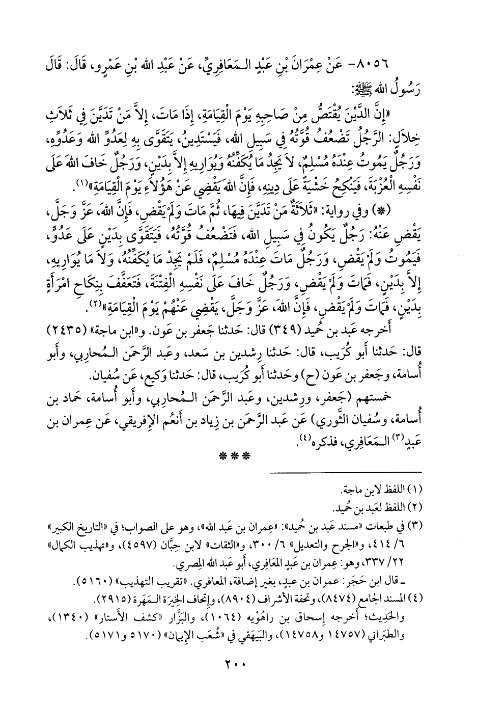 ٨٠٥٦ - عن عمران بن عبد المَعَافِري، عن عبد الله بن عَمرو، قال: قال رسول الله صَلى الله عَليه وسَلم: