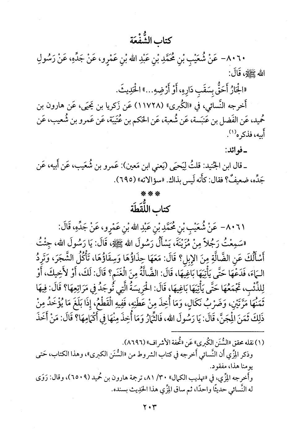- قلنا: إِسناده ضعيفٌ؛ عَمرو بن شُعَيب بن محمد بن عبد الله بن عَمرو بن العاص ليس بحجة. انظر فوائد الحديث رقم (٧٩١٠).
