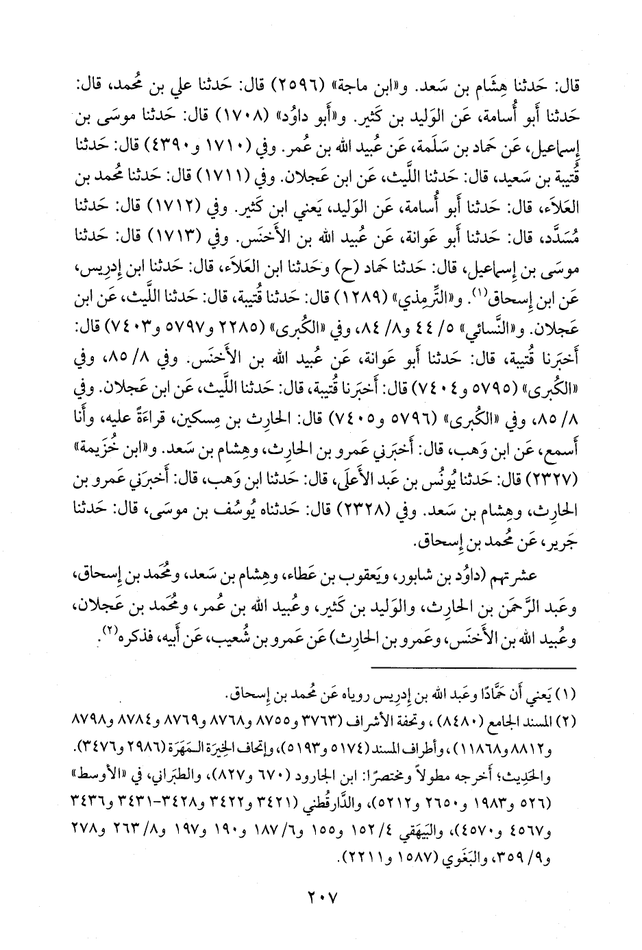 (¬١) يعني أن حمادا وعبد الله بن إدريس روياه عن محمد بن إسحاق.