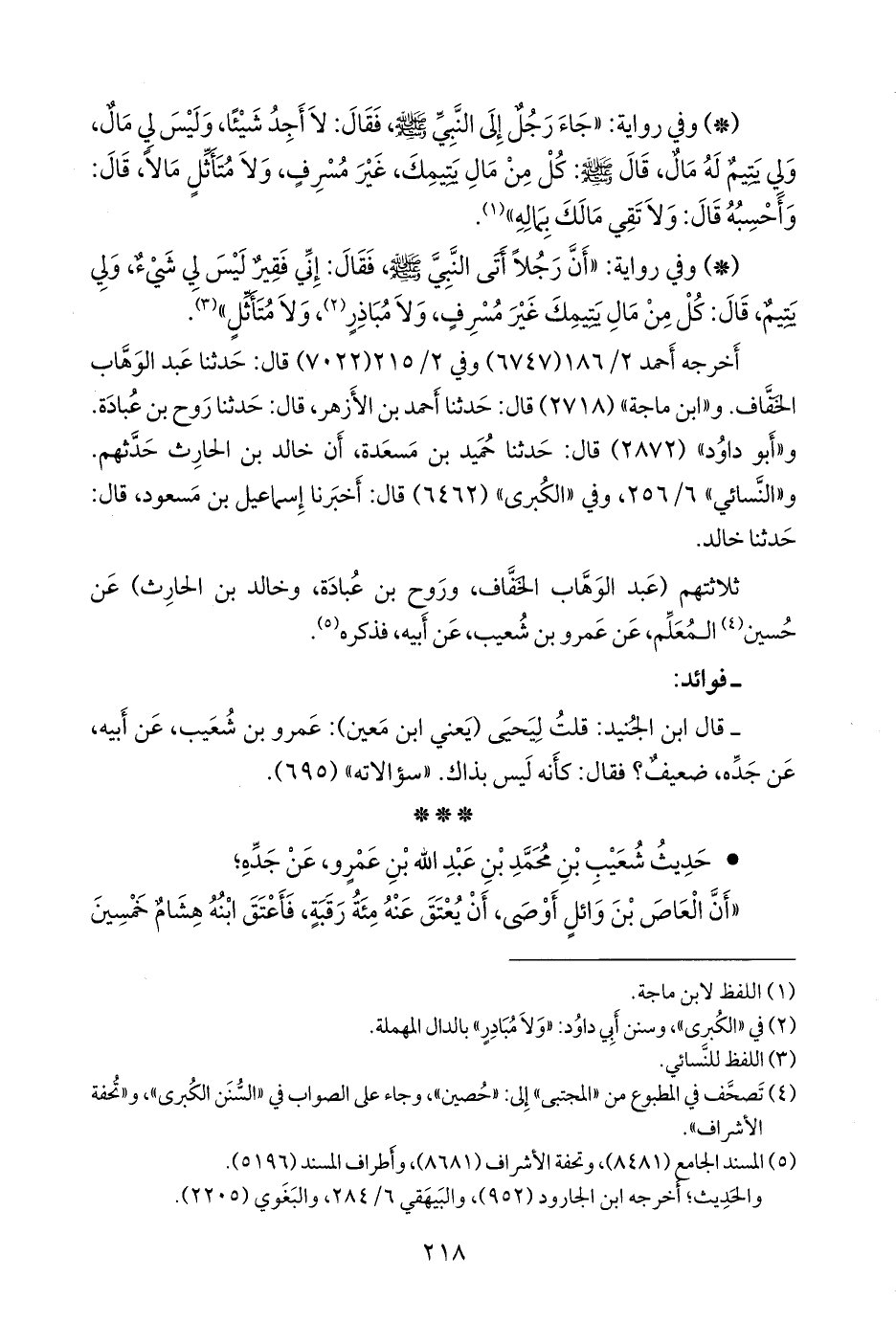 ثلاثتهم (عبد الوَهَّاب الخفاف، وروح بن عبادة، وخالد بن الحارث) عن حسين (¬٣) المعلم، عن عَمرو بن شعيب، عن أبيه، فذكره (¬٤).