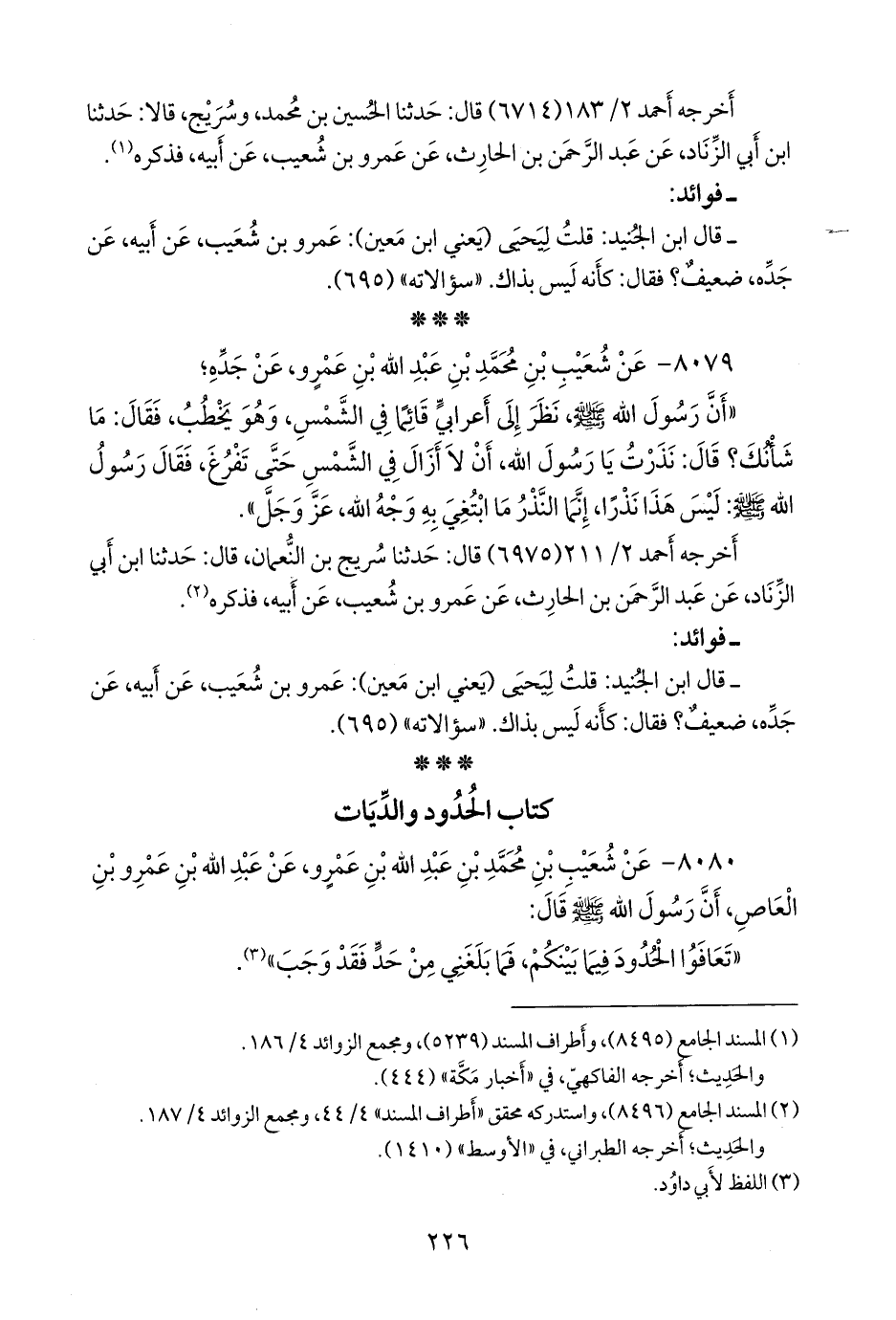 «تعافوا فيما بينكم، قبل أن تأتوني، فما بلغني من حد فقد وجب». «مُرسَل» (¬٤).
