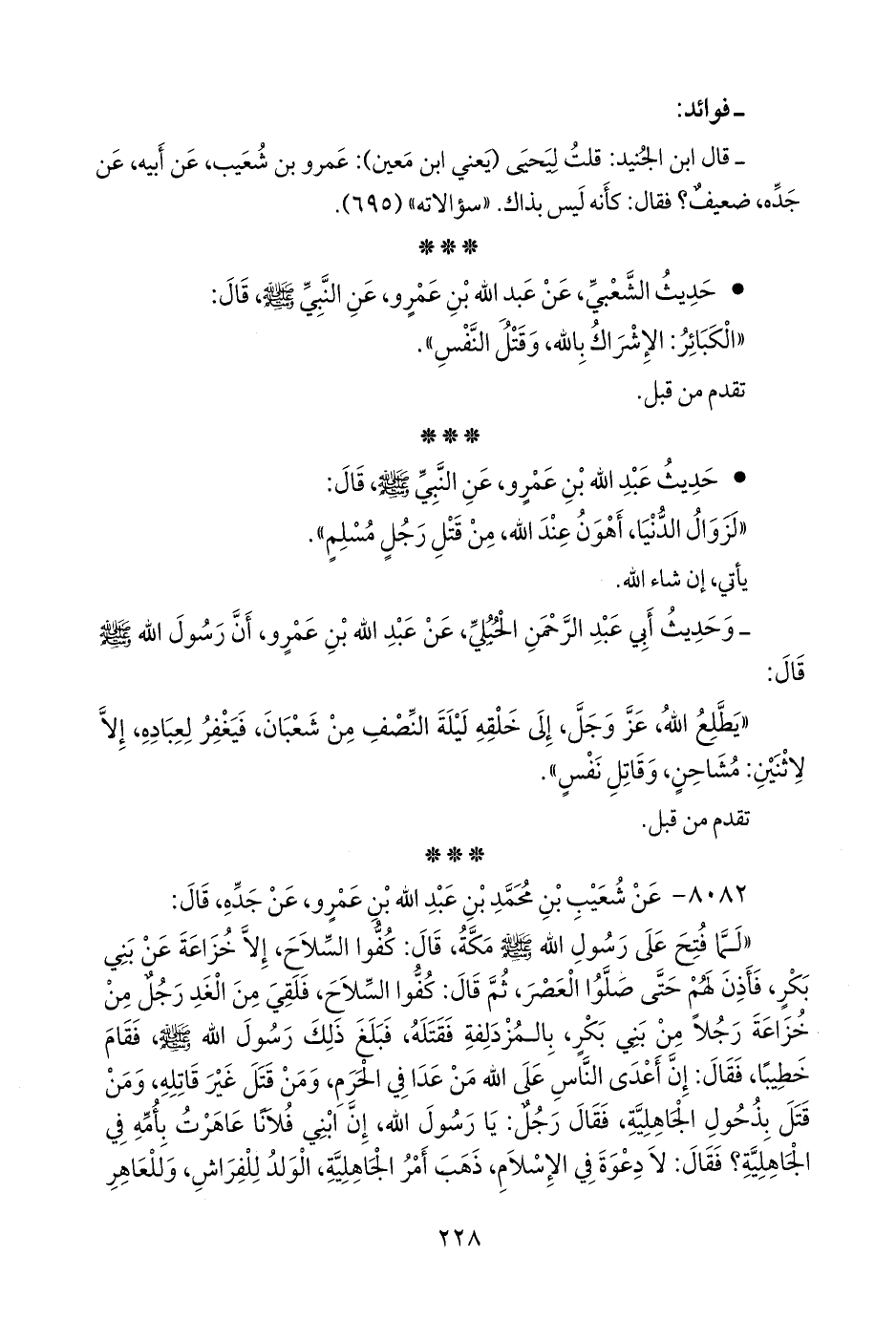 • حديث عبد الله بن عَمرو، عن النبي صَلى الله عَليه وسَلم قال: