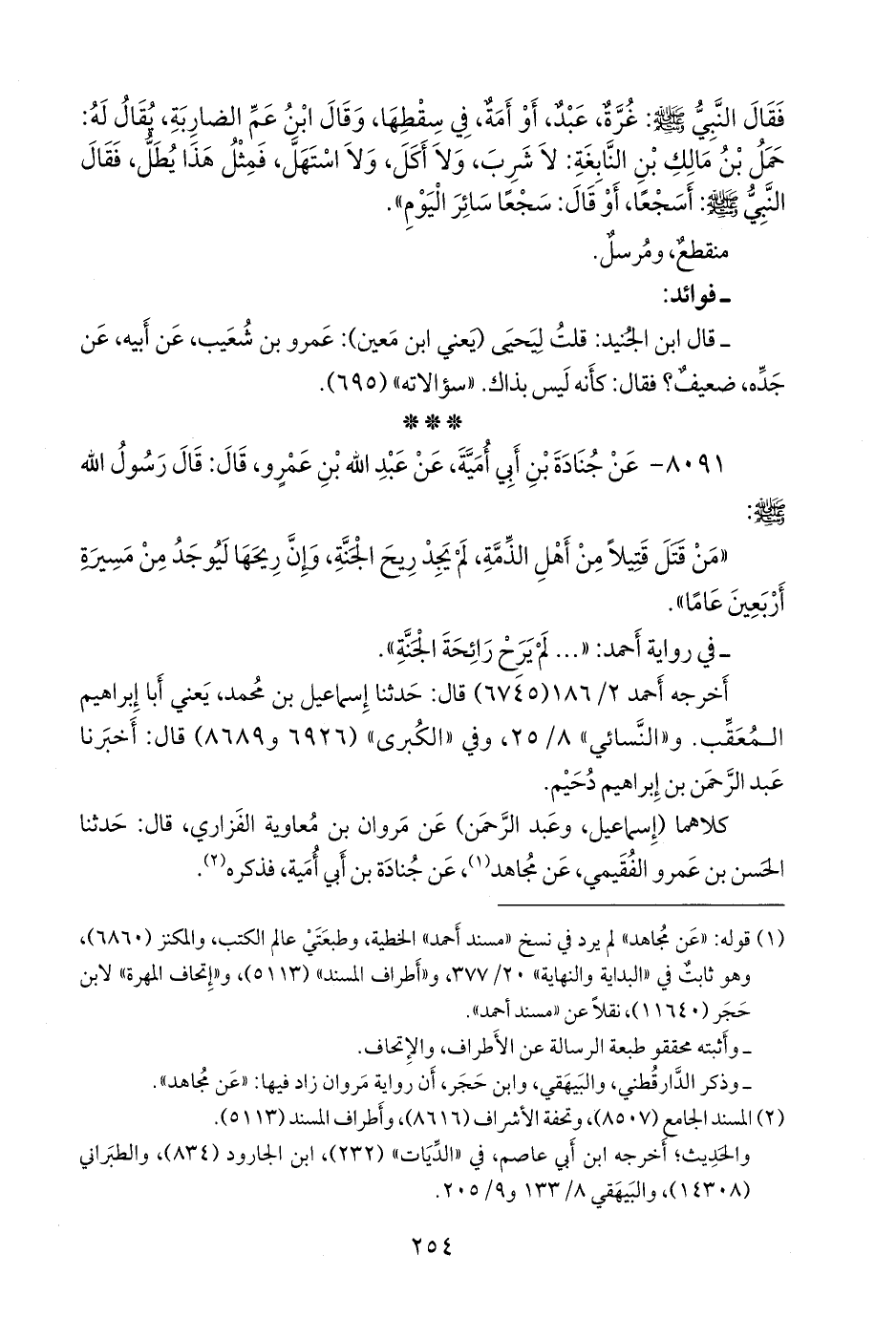 ٨٠٩١ - عن جُنادة بن أبي أُمية، عن عبد الله بن عَمرو، قال: قال رسول الله صَلى الله عَليه وسَلم: