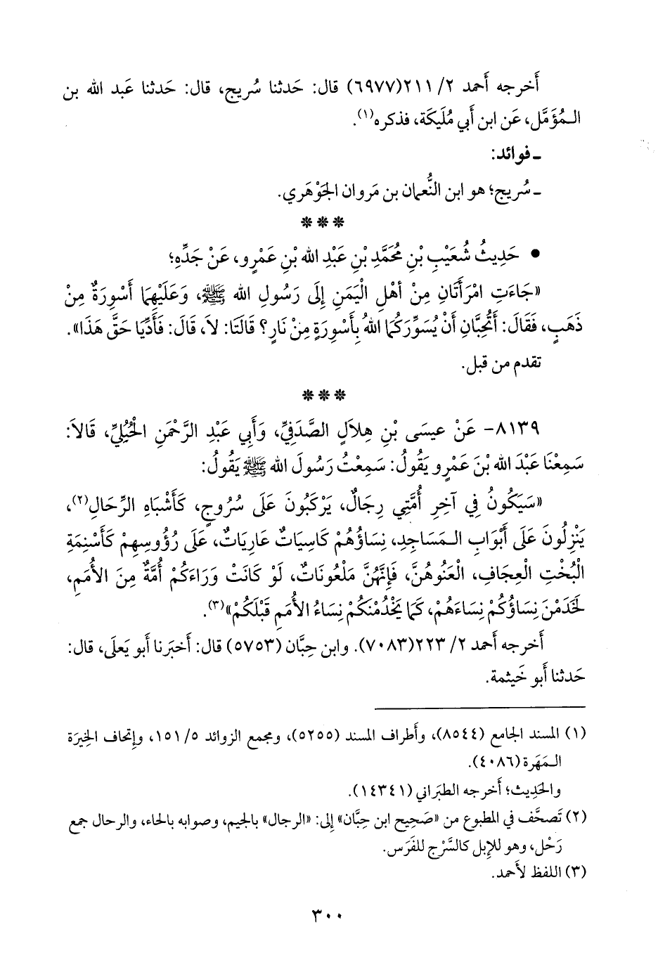 (¬٣) المسند الجامع (٨٧٦٢)، وأطراف المسند (٥٣٤٢)، ومَجمَع الزوائد ٥/ ١٣٧، وإتحاف الخِيرَة المَهَرة (٧٥٤٤).