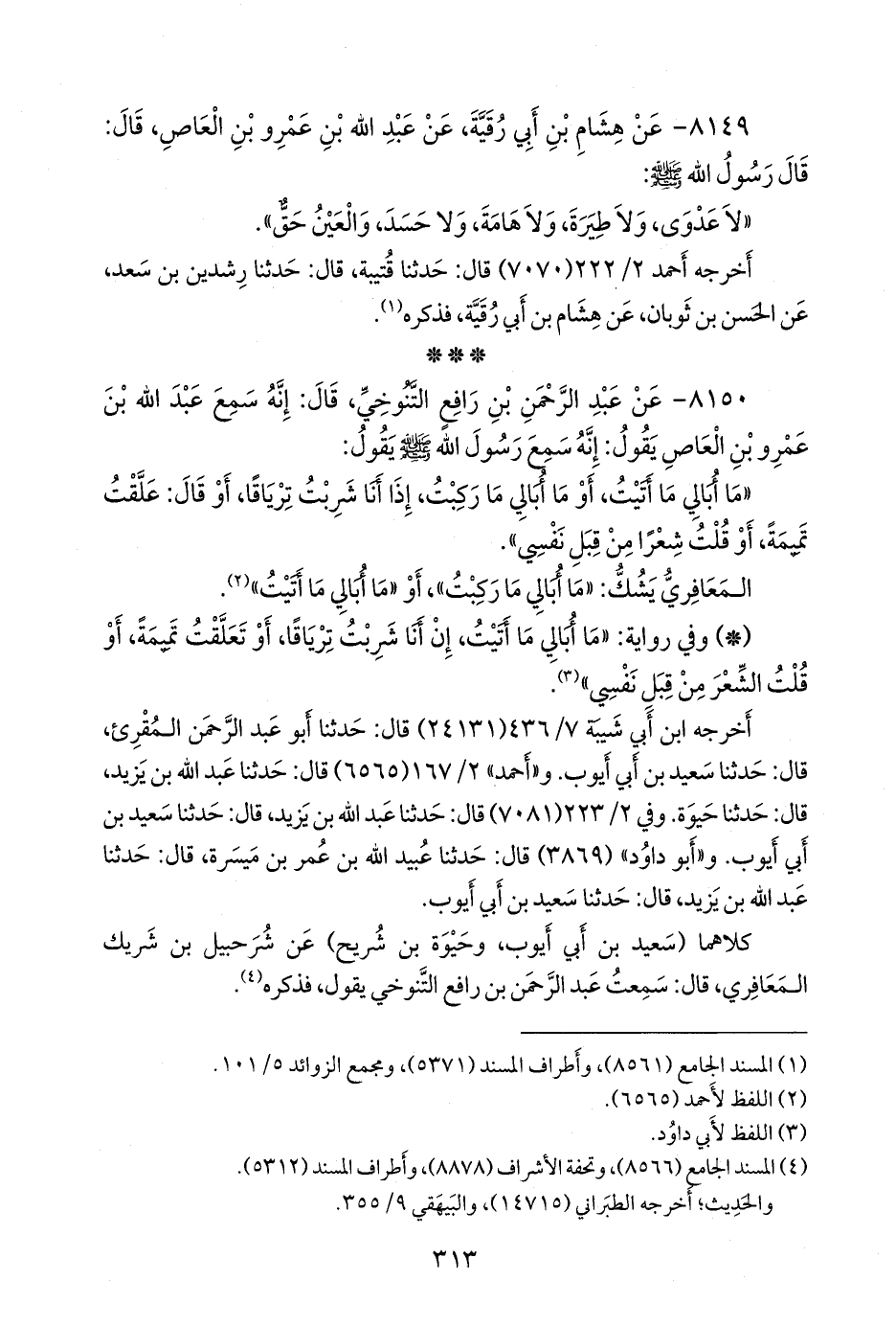 (¬١) المسند الجامع (٨٥٦١)، وأطراف المسند (٥٣٧١)، ومَجمَع الزوائد ٥/ ١٠١.