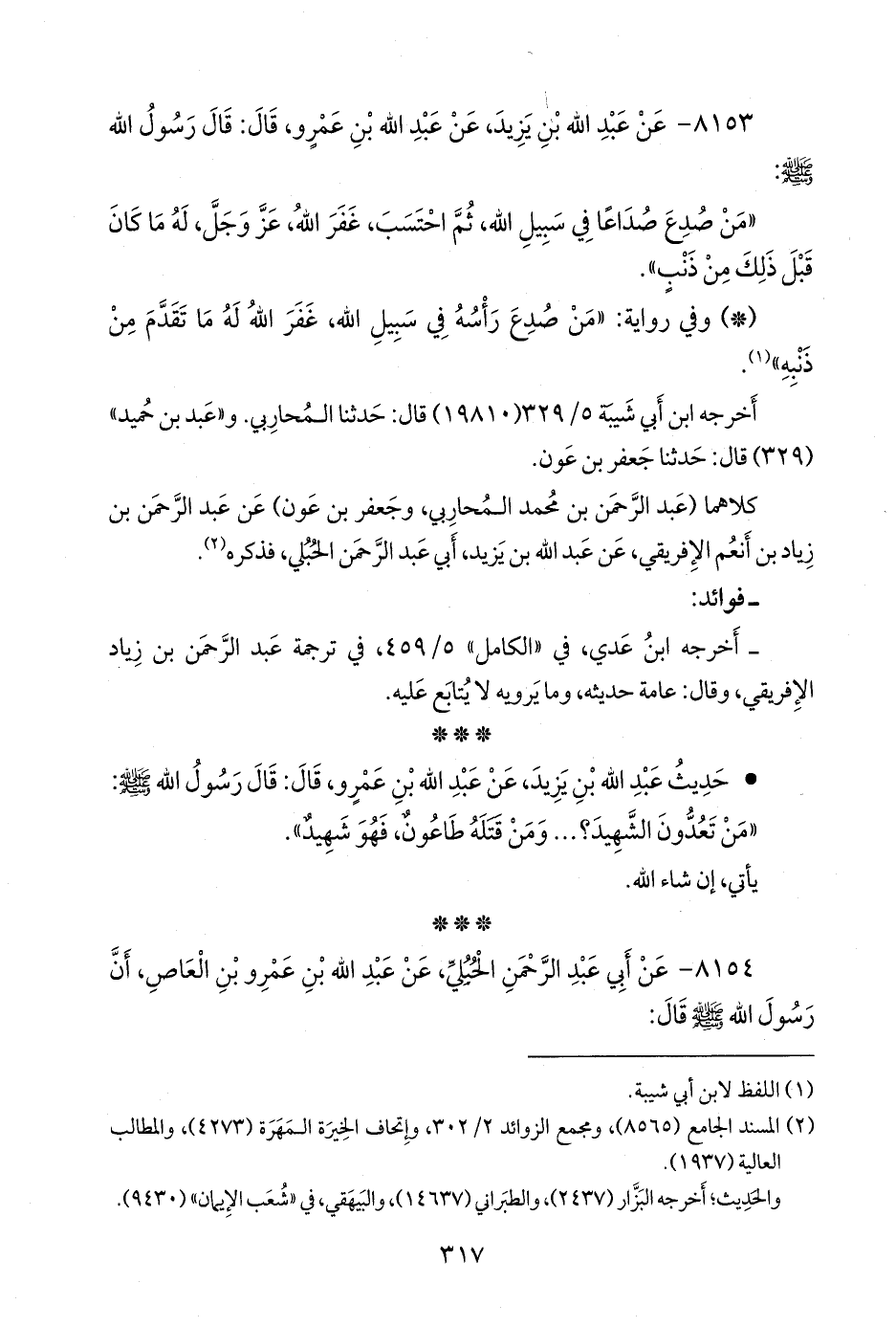 (¬٤) المسند الجامع (٨٥٦٤)، وتحفة الأشراف (٨٨٦٠)، وأطراف المسند (٥٢٧٩).