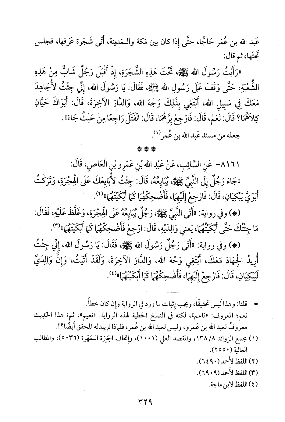 ٨١٦١ - عن السائب، عن عبد الله بن عَمرو بن العاص، قال: