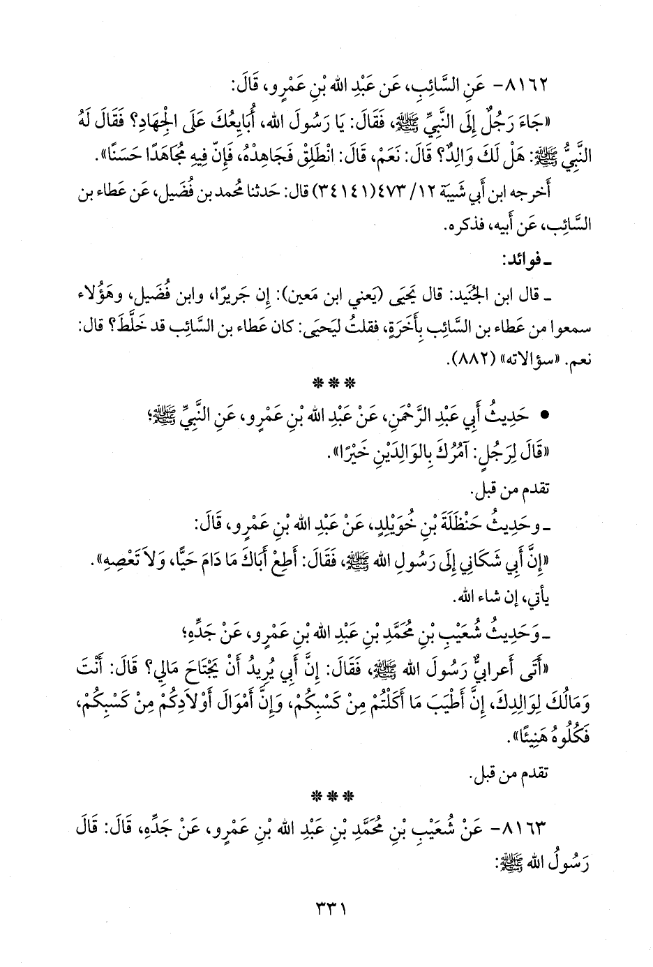 ٨١٦٢ - عن السائب، عن عبد الله بن عَمرو، قال: