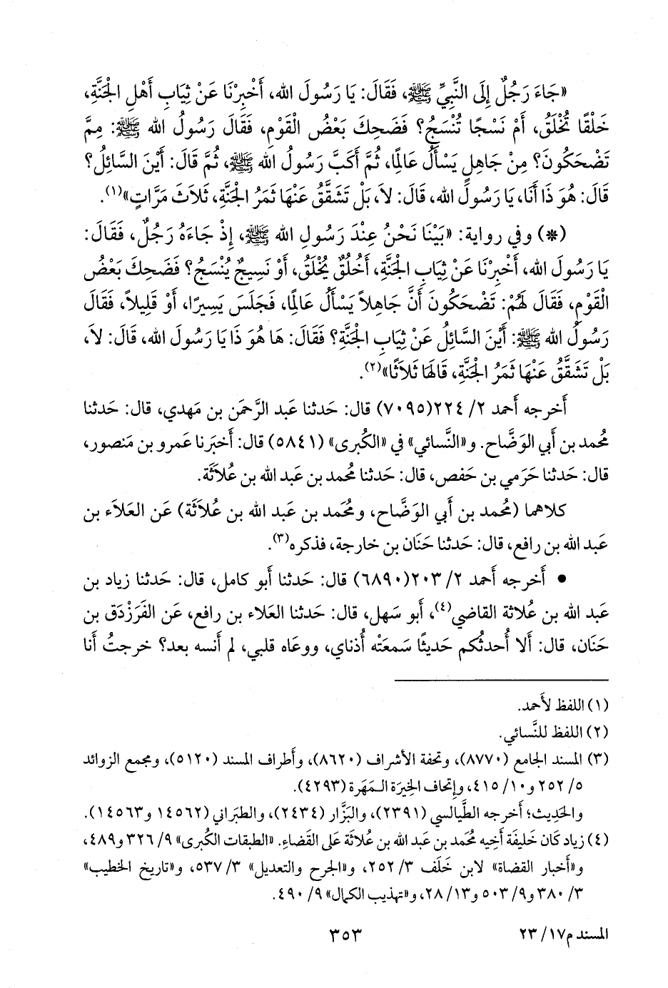 (¬٢) المسند الجامع (٨٧٧٠)، وتحفة الأشراف (٨٦٢٠)، وأطراف المسند (٥١٢٠)، ومَجمَع الزوائد ٥/ ٢٥٢ و ١٠/ ٤١٥، وإتحاف الخِيرَة المَهَرة (٤٢٩٣).