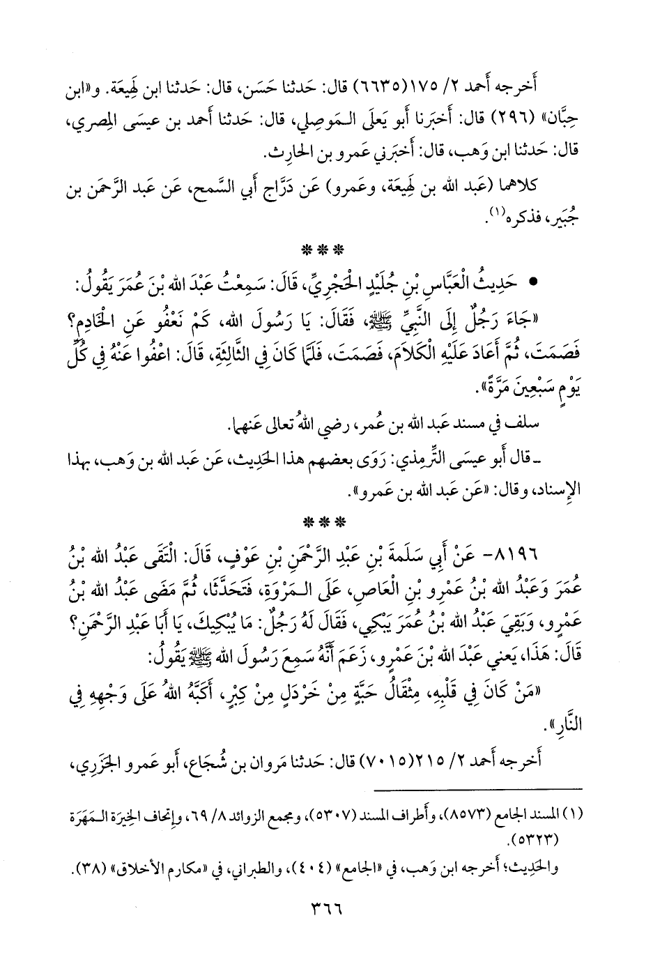 - قال التِّرمِذي: روى بعضهم هذا الحديث، عن عبد الله بن وهب، بهذا الإسناد، وقال: «عن عبد الله بن عَمرو».
