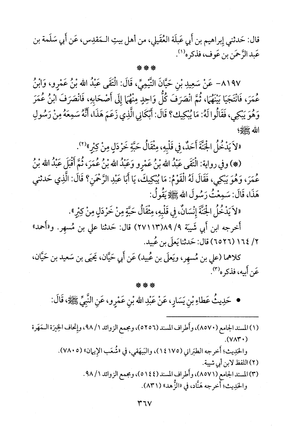 (¬٢) المسند الجامع (٨٥٧١)، وأطراف المسند (٥١٤٤)، ومَجمَع الزوائد ١/ ٩٨.