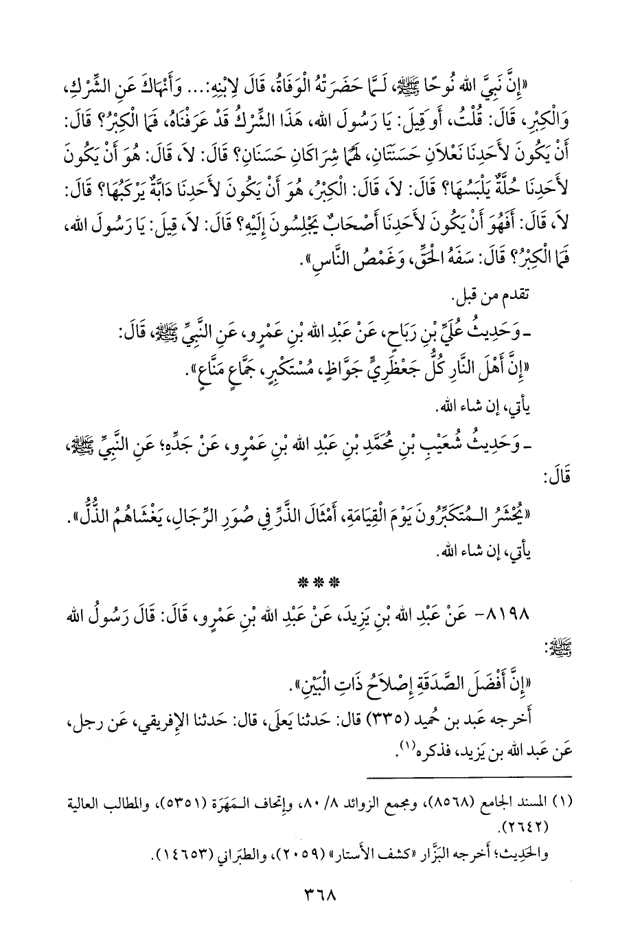 (¬١) المسند الجامع (٨٥٦٨)، ومَجمَع الزوائد ٨/ ٨٠، وإتحاف الخِيرَة المَهَرة (٥٣٥١)، والمطالب العالية (٢٦٤٢).