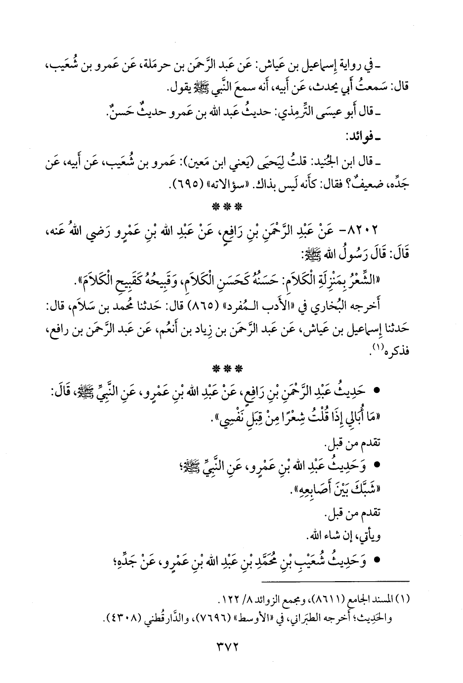 ٨٢٠٢ - عن عبد الرَّحمَن بن رافع، عن عبد الله بن عَمرو رضي الله عنه، قال: قال رسول الله صَلى الله عَليه وسَلم: