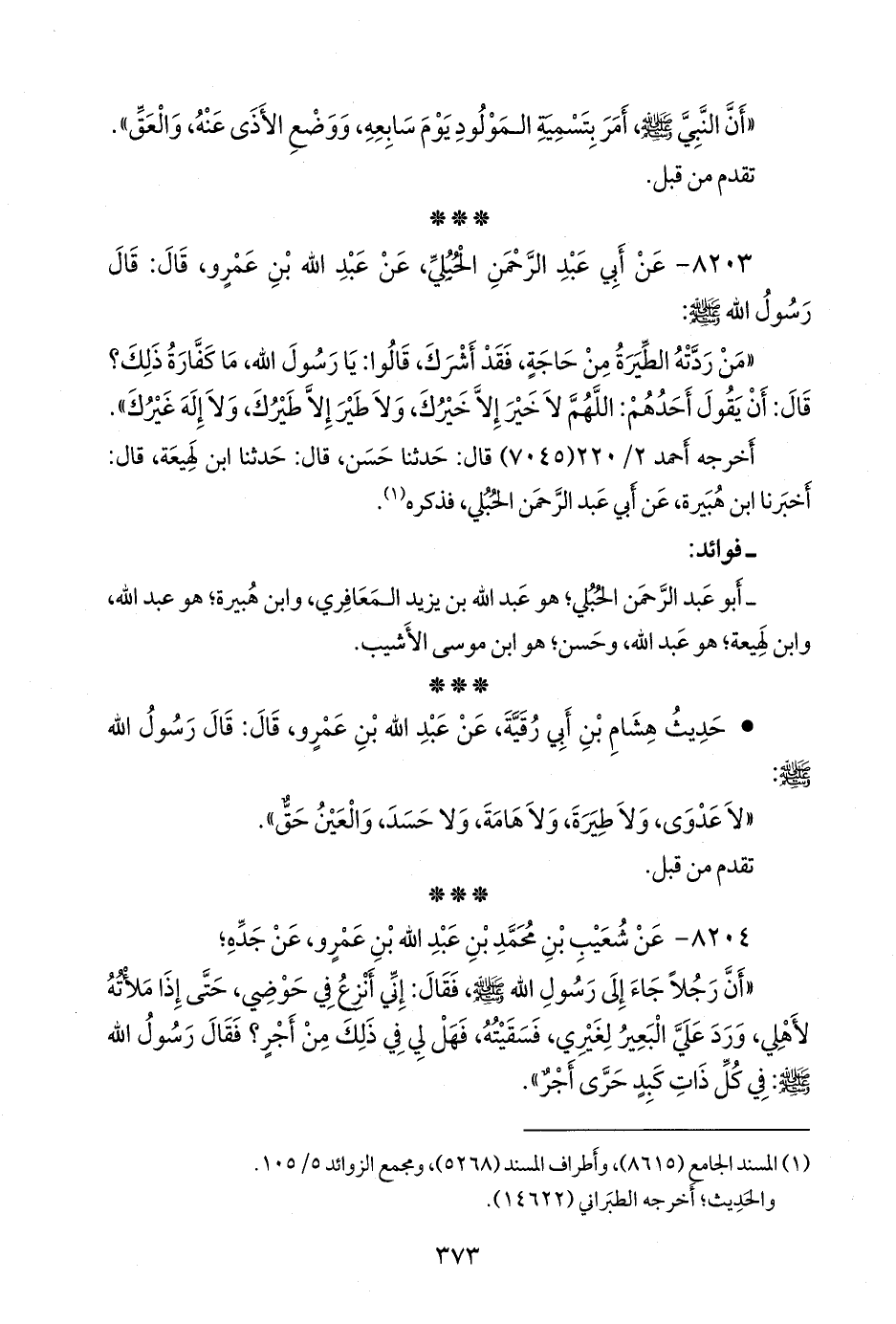 (¬١) المسند الجامع (٨٦١٥)، وأطراف المسند (٥٢٦٨)، ومَجمَع الزوائد ٥/ ١٠٥.