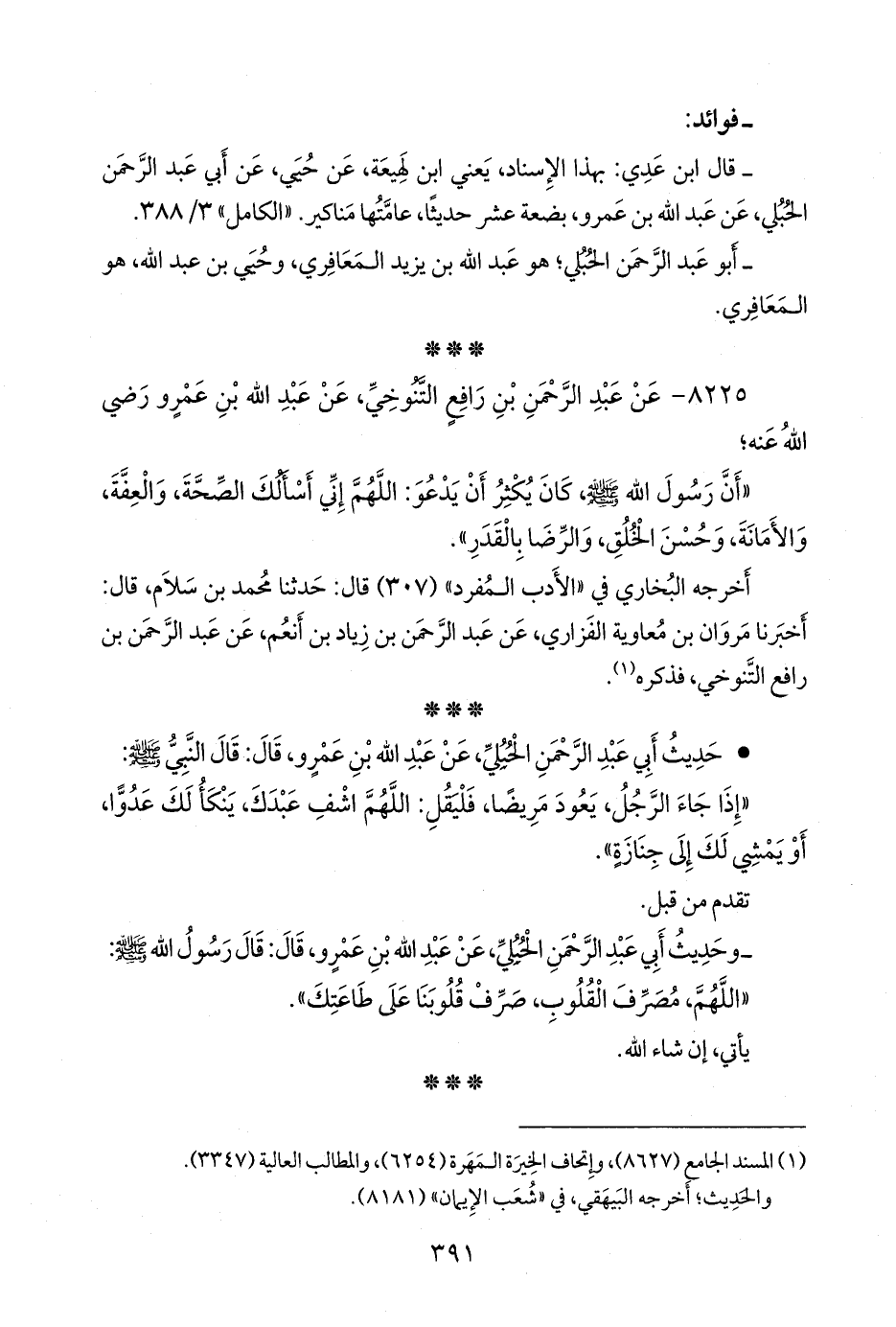 ٨٢٢٥ - عن عبد الرَّحمَن بن رافع التنوخي، عن عبد الله بن عَمرو رضي الله عنه؛