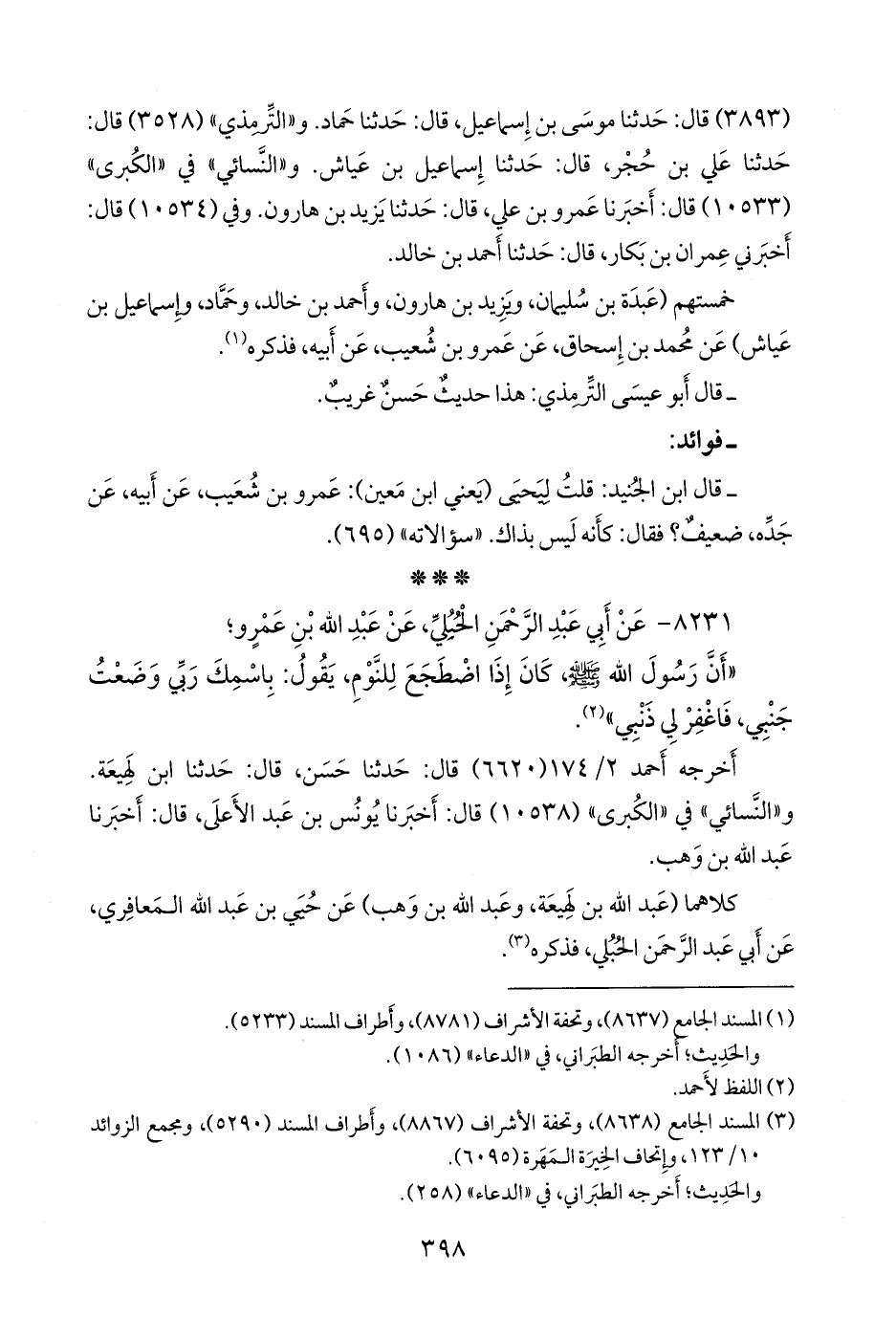 - قلنا: إِسناده ضعيفٌ؛ عَمرو بن شُعَيب بن محمد بن عبد الله بن عَمرو بن العاص ليس بحجة. انظر فوائد الحديث رقم (٧٩١٠).