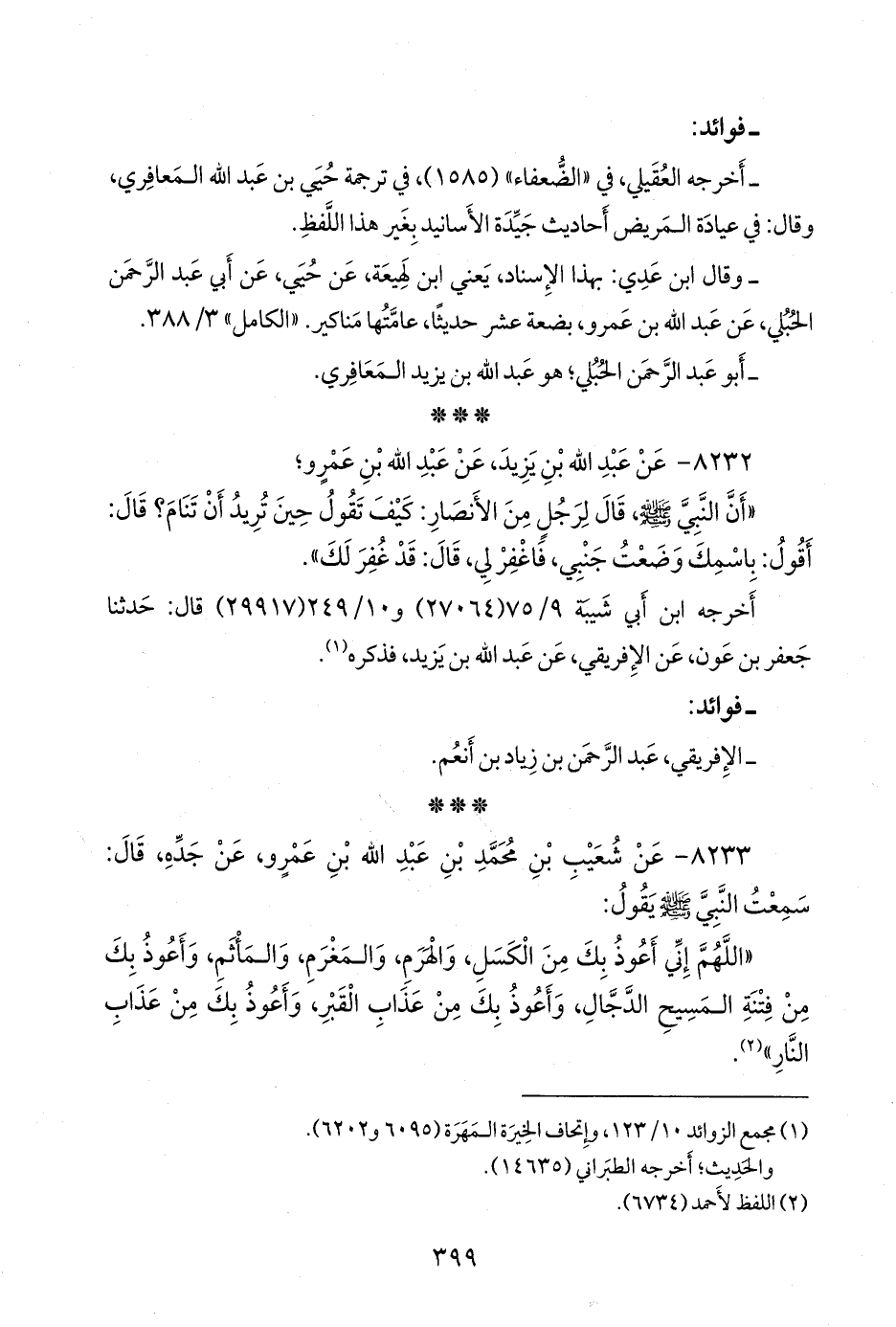 (¬١) مَجمَع الزوائد ١٠/ ١٢٣، وإتحاف الخِيرَة المَهَرة (٦٠٩٥ و ٦٢٠٢).