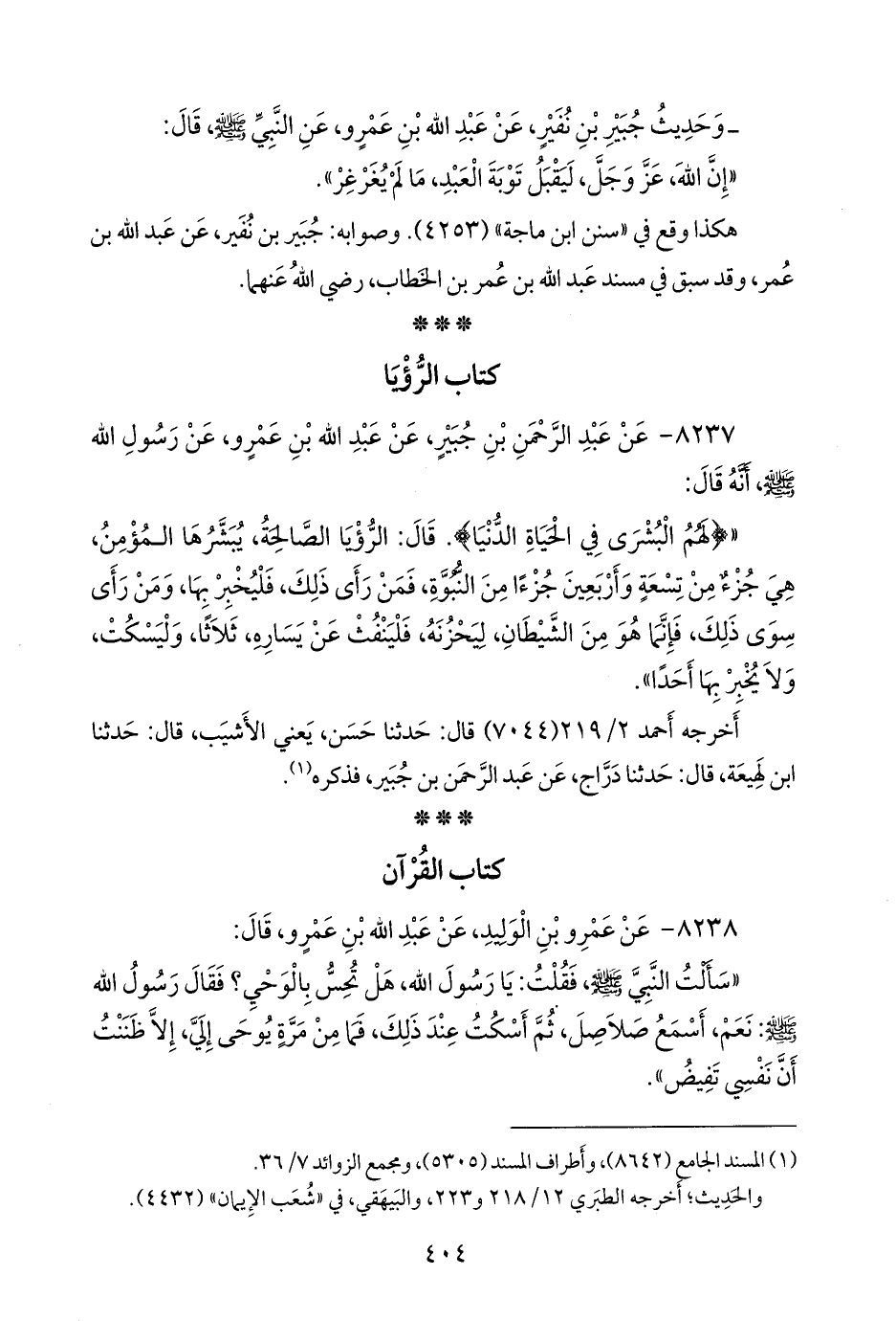 (¬١) المسند الجامع (٨٦٧٥)، وأطراف المسند (٥٣٣٦)، ومَجمَع الزوائد ٨/ ٢٥٦.
